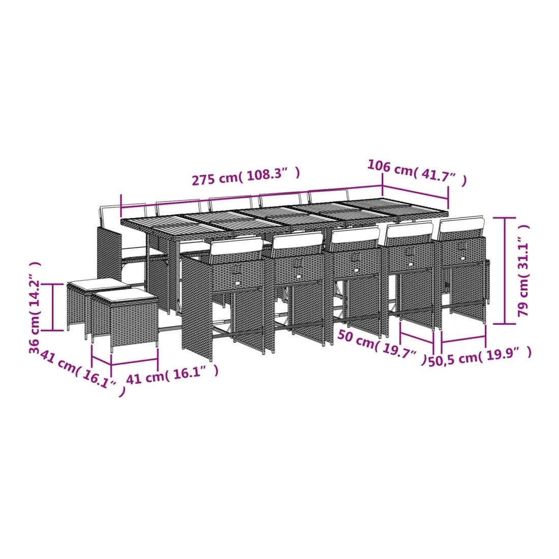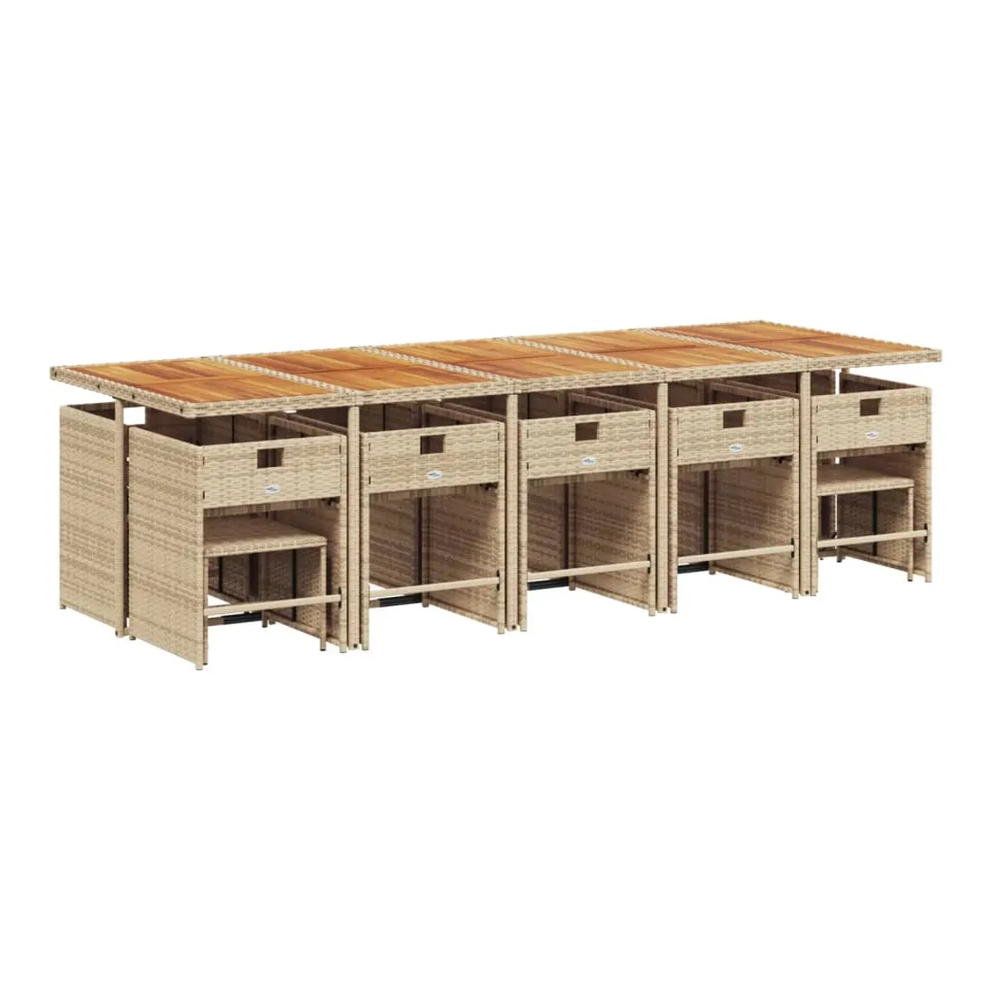 Cet ensemble de salle à manger de jardin est un excellent choix pour les repas en plein air ou pour vous détendre dans le jardin, dans l'arrière-cour ou sur la terrasse. Matériau durable : la résine tressée, également connue sous le nom de poly rotin, est un matériau synthétique solide et nécessitant peu d'entretien qui ressemble au rotin naturel. Il est léger, facile à nettoyer et couramment utilisé pour les meubles d'extérieur en raison de sa durabilité et de ses propriétés de résistance aux intempéries.Rangement compact : ces chaises sont dotées d'un dossier rabattable, ce qui permet de les ranger facilement sous la table. Une fois pliées, elles se rangent parfaitement sous la table, formant un cube peu encombrant. De plus, les tabourets peuvent également être rangés sous les chaises, maximisant encore davantage l'efficacité de l'espace.Expérience d'assise confortable : ce mobilier d'extérieur, doté de coussins épais, offre une expérience d'assise confortable.Housse amovible et lavable : ces coussins de siège sont dotés de housses amovibles pour un lavage et un entretien faciles. Les housses de coussin de chaise ont un rabat à l'arrière pour une fixation facile aux chaises.Dessus stable et facile à nettoyer : cette table de jardin a un dessus en bois d'acacia robuste, durable et facile à nettoyer avec un chiffon humide. Bon à savoir : Pour que vos meubles d'extérieur restent beaux, nous vous recommandons de les protéger avec une housse imperméable.