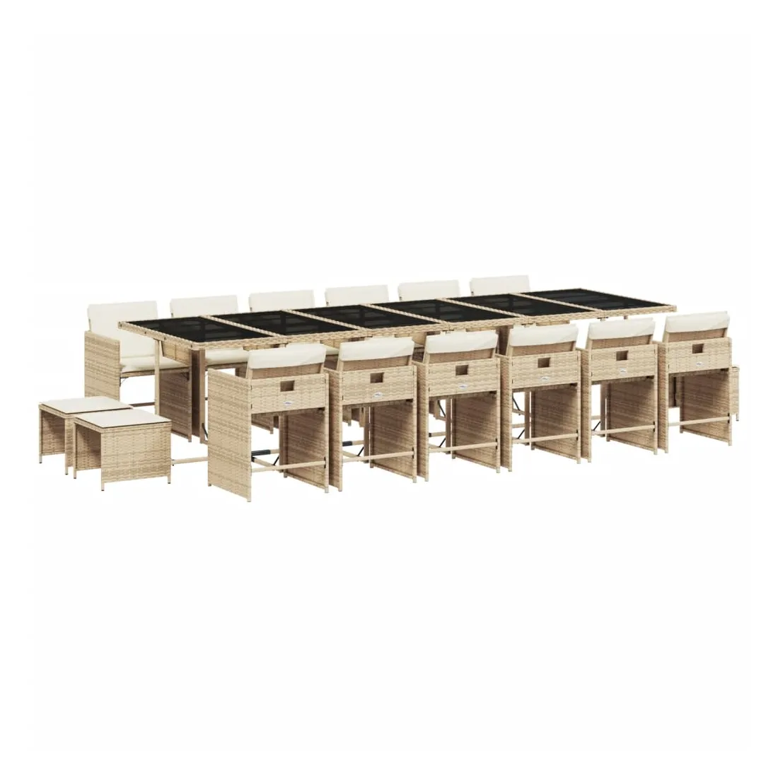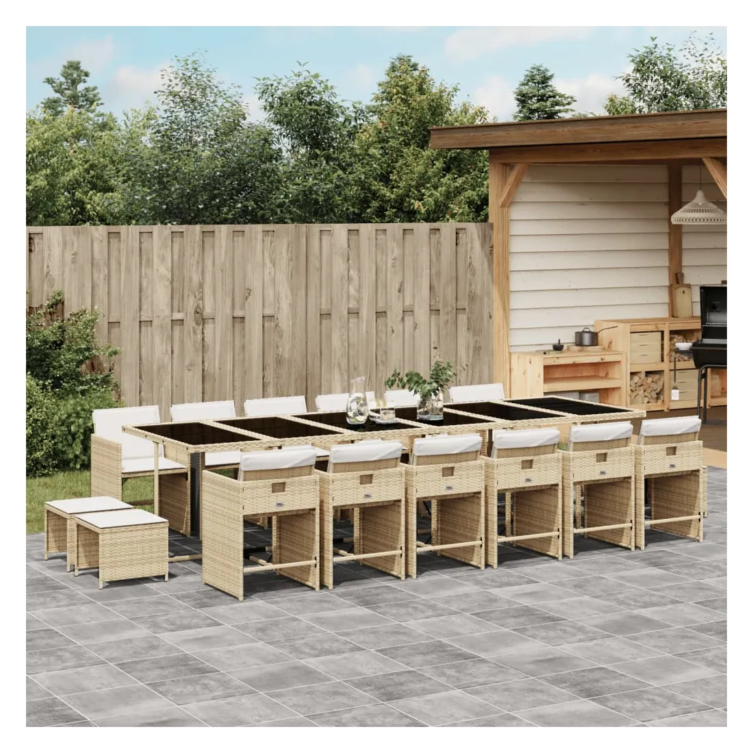 Cet ensemble de salle à manger de jardin est un excellent choix pour les repas en plein air ou pour vous détendre dans le jardin, dans l'arrière-cour ou sur la terrasse. Matériau durable : la résine tressée, également connue sous le nom de poly rotin, est un matériau synthétique solide et nécessitant peu d'entretien qui ressemble au rotin naturel. Il est léger, facile à nettoyer et couramment utilisé pour les meubles d'extérieur en raison de sa durabilité et de ses propriétés de résistance aux intempéries.Rangement compact : ces chaises sont dotées d'un dossier rabattable, ce qui permet de les ranger facilement sous la table. Une fois pliées, elles se rangent parfaitement sous la table, formant un cube peu encombrant. De plus, les tabourets peuvent également être rangés sous les chaises, maximisant encore davantage l'efficacité de l'espace.Expérience d'assise confortable : ce mobilier d'extérieur, doté de coussins épais, offre une expérience d'assise confortable.Housse amovible et lavable : ces coussins de siège sont dotés de housses amovibles pour un lavage et un entretien faciles. Les housses de coussin de chaise ont un rabat à l'arrière pour une fixation facile aux chaises.Dessus stable et facile à nettoyer : cette table de jardin est dotée d'un dessus en verre trempé robuste, durable et facile à nettoyer à l'aide d'un chiffon humide. Bon à savoir : Pour que vos meubles d'extérieur restent beaux, nous vous recommandons de les protéger avec une housse imperméable.