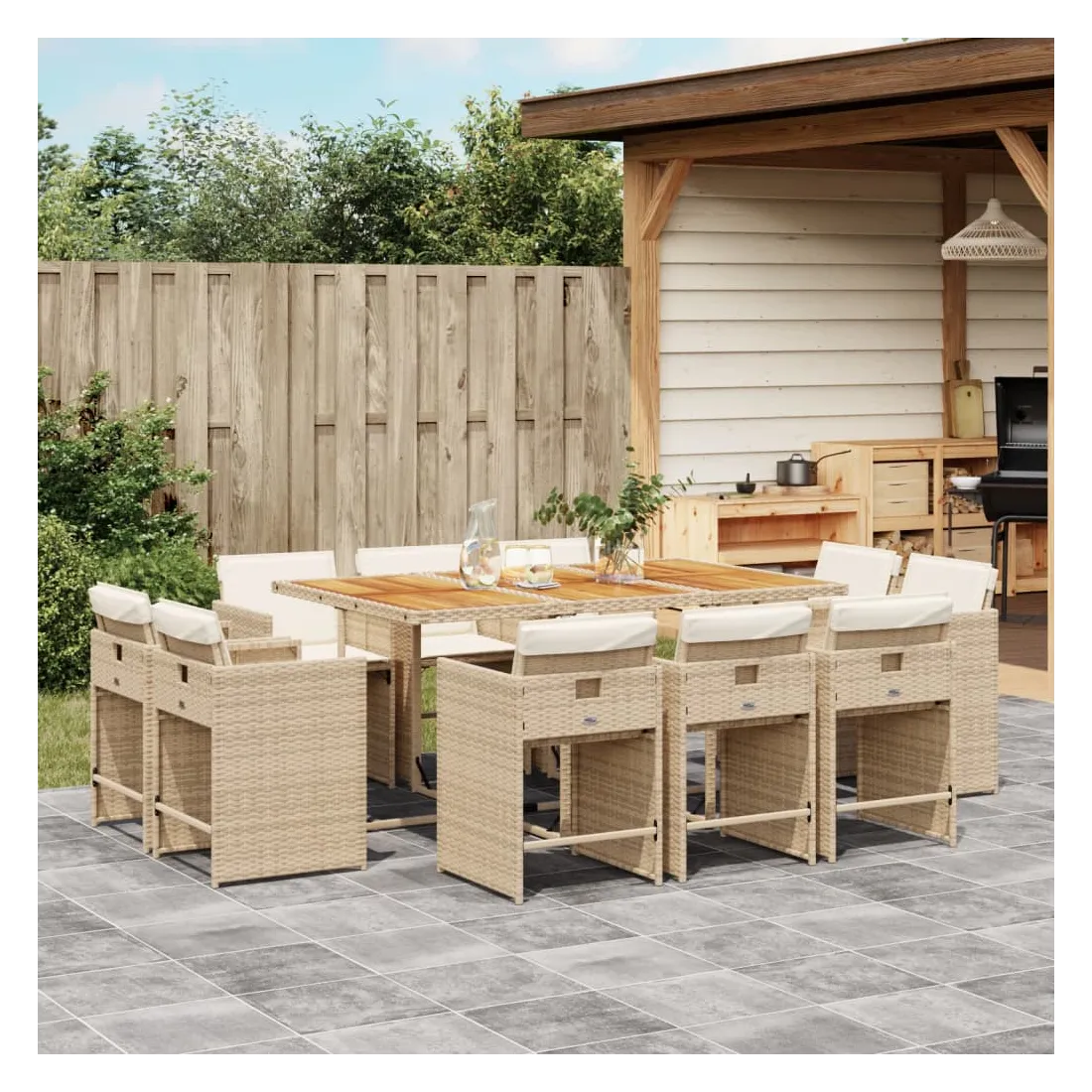 - Matériau : résine tressée, acier enduit de poudre, bois d'acacia massif