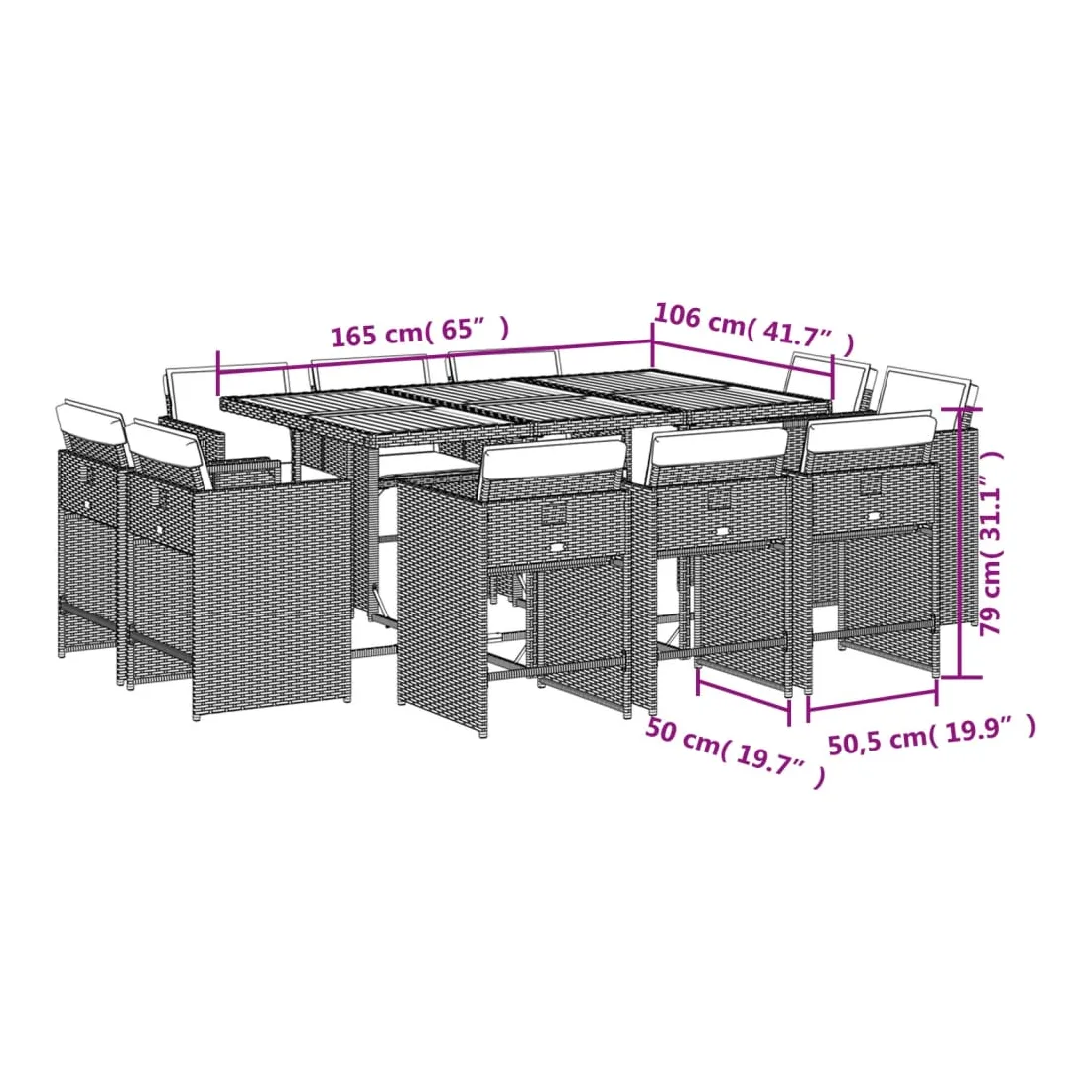 Cet ensemble de salle à manger de jardin est un excellent choix pour les repas en plein air ou pour vous détendre dans le jardin, dans l'arrière-cour ou sur la terrasse. Matériau durable : la résine tressée, également connue sous le nom de poly rotin, est un matériau synthétique solide et nécessitant peu d'entretien qui ressemble au rotin naturel. Il est léger, facile à nettoyer et couramment utilisé pour les meubles d'extérieur en raison de sa durabilité et de ses propriétés de résistance aux intempéries.Rangement compact : ces chaises sont dotées d'un dossier rabattable, ce qui permet de les ranger facilement sous la table. Une fois pliées, elles se rangent parfaitement sous la table, formant un cube peu encombrant.Expérience d'assise confortable : ce mobilier d'extérieur, doté de coussins épais, offre une expérience d'assise confortable.Housse amovible et lavable : ces coussins de siège sont dotés de housses amovibles pour un lavage et un entretien faciles. Les housses de coussin de chaise ont un rabat à l'arrière pour une fixation facile aux chaises.Dessus stable et facile à nettoyer : cette table de jardin a un dessus en bois d'acacia robuste, durable et facile à nettoyer avec un chiffon humide. Bon à savoir : Pour que vos meubles d'extérieur restent beaux, nous vous recommandons de les protéger avec une housse imperméable.