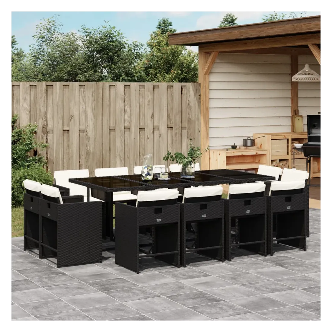 Cet ensemble de salle à manger de jardin est un excellent choix pour les repas en plein air ou pour vous détendre dans le jardin, dans l'arrière-cour ou sur la terrasse. Matériau durable : la résine tressée, également connue sous le nom de poly rotin, est un matériau synthétique solide et nécessitant peu d'entretien qui ressemble au rotin naturel. Il est léger, facile à nettoyer et couramment utilisé pour les meubles d'extérieur en raison de sa durabilité et de ses propriétés de résistance aux intempéries.Rangement compact : ces chaises sont dotées d'un dossier rabattable, ce qui permet de les ranger facilement sous la table. Une fois pliées, elles se rangent parfaitement sous la table, formant un cube peu encombrant.Expérience d'assise confortable : ce mobilier d'extérieur, doté de coussins épais, offre une expérience d'assise confortable.Housse amovible et lavable : ces coussins de siège sont dotés de housses amovibles pour un lavage et un entretien faciles. Les housses de coussin de chaise ont un rabat à l'arrière pour une fixation facile aux chaises.Dessus stable et facile à nettoyer : cette table de jardin est dotée d'un dessus en verre trempé robuste, durable et facile à nettoyer à l'aide d'un chiffon humide. Bon à savoir : Pour que vos meubles d'extérieur restent beaux, nous vous recommandons de les protéger avec une housse imperméable.