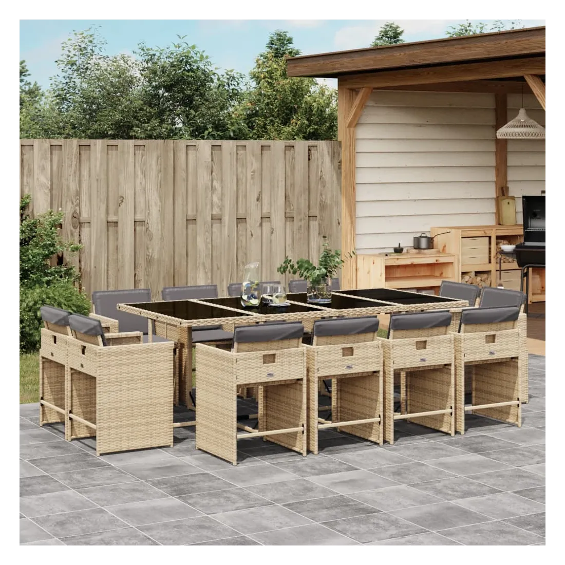 Cet ensemble de salle à manger de jardin est un excellent choix pour les repas en plein air ou pour vous détendre dans le jardin, dans l'arrière-cour ou sur la terrasse. Matériau durable : la résine tressée, également connue sous le nom de poly rotin, est un matériau synthétique solide et nécessitant peu d'entretien qui ressemble au rotin naturel. Il est léger, facile à nettoyer et couramment utilisé pour les meubles d'extérieur en raison de sa durabilité et de ses propriétés de résistance aux intempéries.Rangement compact : ces chaises sont dotées d'un dossier rabattable, ce qui permet de les ranger facilement sous la table. Une fois pliées, elles se rangent parfaitement sous la table, formant un cube peu encombrant.Expérience d'assise confortable : ce mobilier d'extérieur, doté de coussins épais, offre une expérience d'assise confortable.Housse amovible et lavable : ces coussins de siège sont dotés de housses amovibles pour un lavage et un entretien faciles. Les housses de coussin de chaise ont un rabat à l'arrière pour une fixation facile aux chaises.Dessus stable et facile à nettoyer : cette table de jardin est dotée d'un dessus en verre trempé robuste, durable et facile à nettoyer à l'aide d'un chiffon humide. Bon à savoir : Pour que vos meubles d'extérieur restent beaux, nous vous recommandons de les protéger avec une housse imperméable.