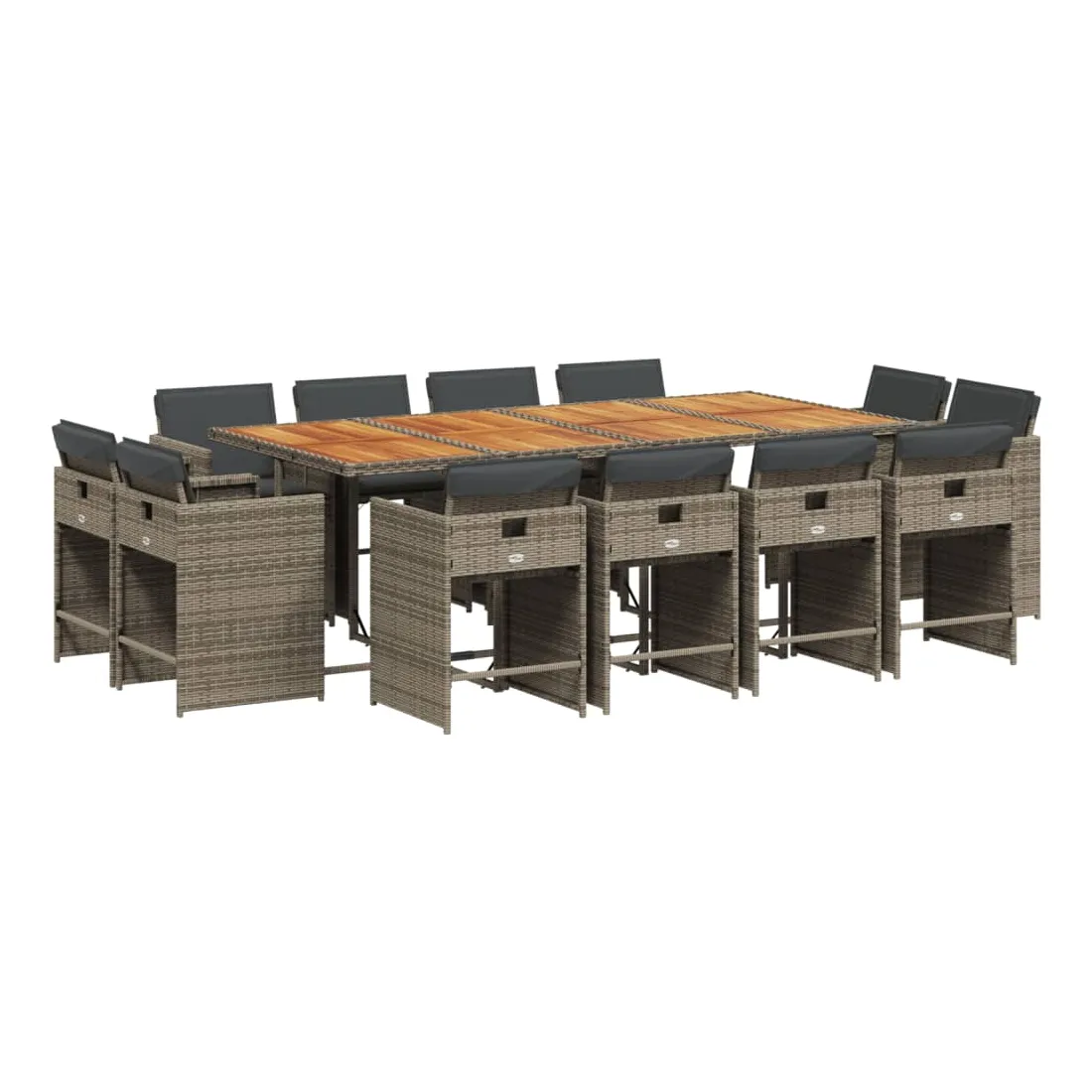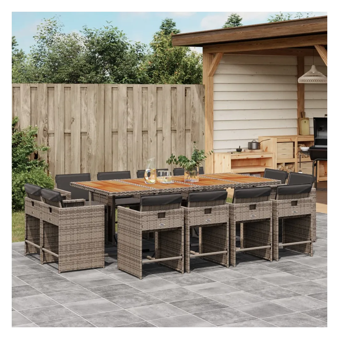 Cet ensemble de salle à manger de jardin est un excellent choix pour les repas en plein air ou pour vous détendre dans le jardin, dans l'arrière-cour ou sur la terrasse. Matériau durable : la résine tressée, également connue sous le nom de poly rotin, est un matériau synthétique solide et nécessitant peu d'entretien qui ressemble au rotin naturel. Il est léger, facile à nettoyer et couramment utilisé pour les meubles d'extérieur en raison de sa durabilité et de ses propriétés de résistance aux intempéries.Rangement compact : ces chaises sont dotées d'un dossier rabattable, ce qui permet de les ranger facilement sous la table. Une fois pliées, elles se rangent parfaitement sous la table, formant un cube peu encombrant.Expérience d'assise confortable : ce mobilier d'extérieur, doté de coussins épais, offre une expérience d'assise confortable.Housse amovible et lavable : ces coussins de siège sont dotés de housses amovibles pour un lavage et un entretien faciles. Les housses de coussin de chaise ont un rabat à l'arrière pour une fixation facile aux chaises.Dessus stable et facile à nettoyer : cette table de jardin a un dessus en bois d'acacia robuste, durable et facile à nettoyer avec un chiffon humide. Bon à savoir : Pour que vos meubles d'extérieur restent beaux, nous vous recommandons de les protéger avec une housse imperméable.