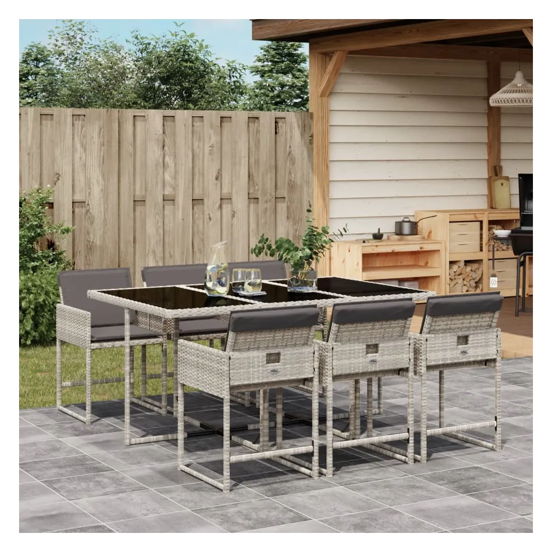 Cet ensemble de salle à manger de jardin est un excellent choix pour les repas en plein air ou pour vous détendre dans le jardin, dans l'arrière-cour ou sur la terrasse. Matériau durable : la résine tressée, également connue sous le nom de poly rotin, est un matériau synthétique solide et nécessitant peu d'entretien qui ressemble au rotin naturel. Il est léger, facile à nettoyer et couramment utilisé pour les meubles d'extérieur en raison de sa durabilité et de ses propriétés de résistance aux intempéries.Rangement compact : ces chaises sont dotées d'un dossier rabattable, ce qui permet de les ranger facilement sous la table. Une fois pliées, elles se rangent parfaitement sous la table, formant un cube peu encombrant.Expérience d'assise confortable : ce mobilier d'extérieur, doté de coussins épais, offre une expérience d'assise confortable.Housse amovible et lavable : ces coussins de siège sont dotés de housses amovibles pour un lavage et un entretien faciles. Les housses de coussin ont un rabat à l'arrière pour une fixation facile aux dossiers.Dessus en verre : le dessus de la table d'extérieur est fabriqué en verre trempé solide et durable, ce qui le rend facile à nettoyer avec un chiffon humide et ajoute une touche d'élégance à votre espace extérieur. Bon à savoir :Pour que vos meubles d'extérieur restent beaux, nous vous recommandons de les protéger avec une housse imperméable.