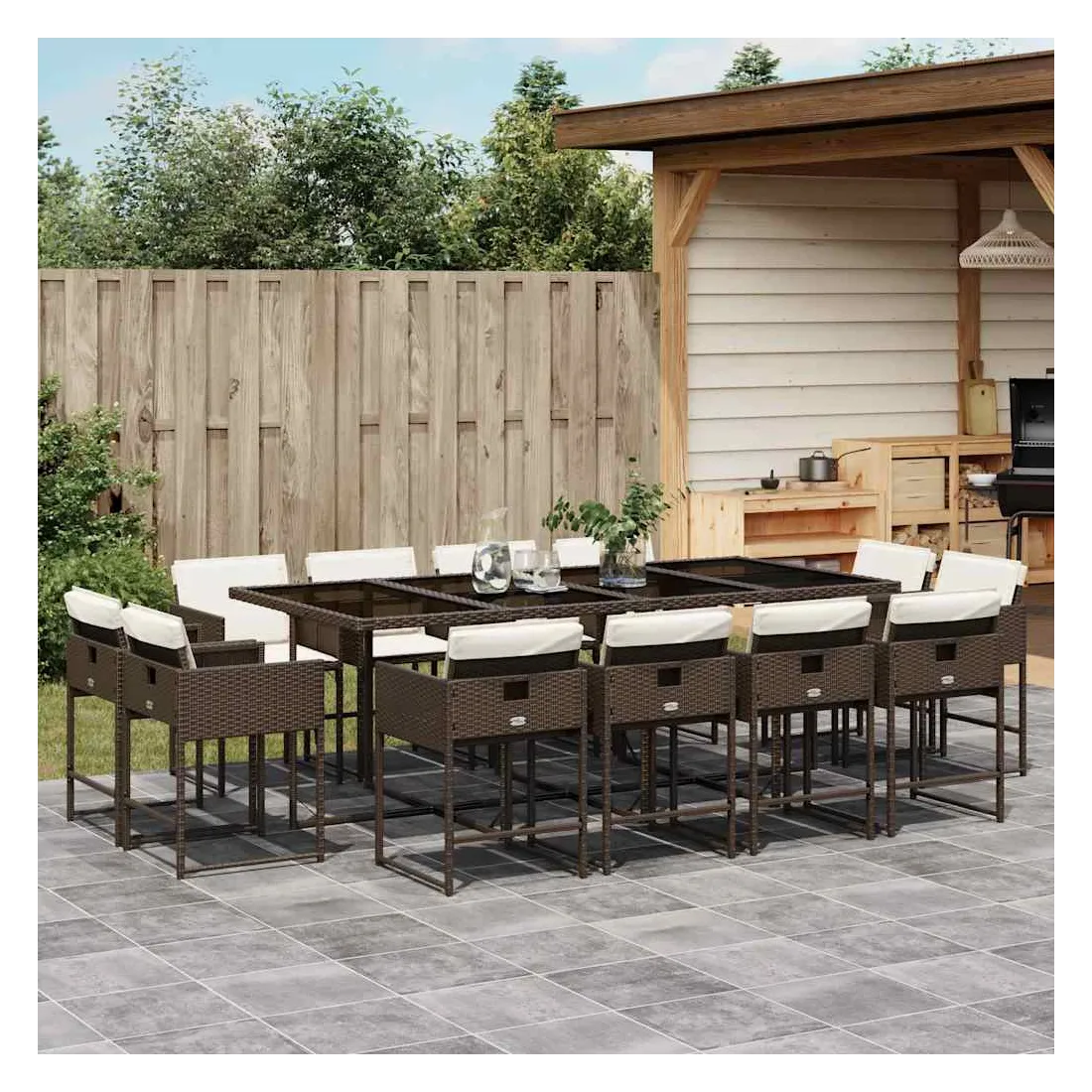 Cet ensemble de salle à manger de jardin est un excellent choix pour les repas en plein air ou pour vous détendre dans le jardin, l'arrière-cour ou le patio. Matériau durable : la résine tressée, également connue sous le nom de poly rotin, est un matériau synthétique solide et nécessitant peu d'entretien qui ressemble au rotin naturel. Il est léger, facile à nettoyer et couramment utilisé pour les meubles d'extérieur en raison de sa durabilité et de ses propriétés de résistance aux intempéries.Rangement compact : ces chaises sont dotées d'un dossier rabattable, ce qui permet de les ranger facilement sous la table. Une fois pliées, elles se rangent parfaitement sous la table, formant un cube peu encombrant.Expérience d'assise confortable : ce mobilier d'extérieur, doté de coussins épais, offre une expérience d'assise confortable.Housse amovible et lavable : ces coussins de siège sont dotés de housses amovibles pour un lavage et un entretien faciles. Les housses de coussin de chaise ont un rabat à l'arrière pour une fixation facile aux chaises.Dessus en verre : le dessus de la table de jardin est fabriqué en verre trempé solide et durable, ce qui le rend facile à nettoyer avec un chiffon humide et ajoute une touche d'élégance à votre espace extérieur. Bon à savoir :Pour que vos meubles d'extérieur restent beaux, nous vous recommandons de les protéger avec une housse imperméable.