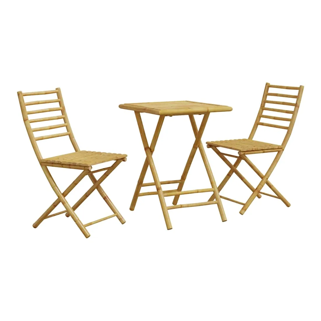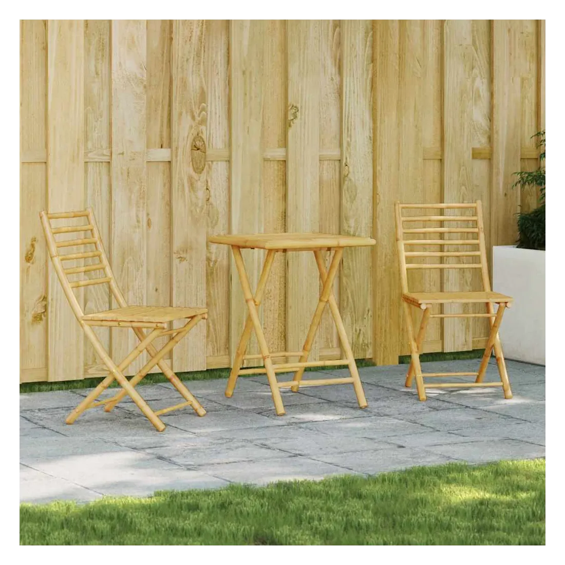 Savourez une tasse de café ou discutez avec votre famille et vos amis dans le jardin, l'arrière-cour ou sur le balcon avec cet ensemble de bistro ! Durable : en tant que matériau naturel, le bambou offre une bonne respirabilité et une faible odeur. Ces qualités rendent l’ensemble de bistro de jardin durable, résistant à l’eau et de longue durée.Design pliable : l'ensemble de bistro d'extérieur peut être facilement plié lorsqu'il n'est pas utilisé pour faciliter le rangement et le transport.Dessus stable : le dessus stable de la table de jardin est idéal pour placer votre boisson ou toute autre nécessité dont vous avez besoin à portée de main.Une expérience d'assise confortable : dotée d'un dossier, la chaise d'extérieur vous offre un confort optimal. Bon à savoir :Pour que vos meubles d'extérieur restent beaux, nous vous recommandons de les protéger avec une housse imperméable.
