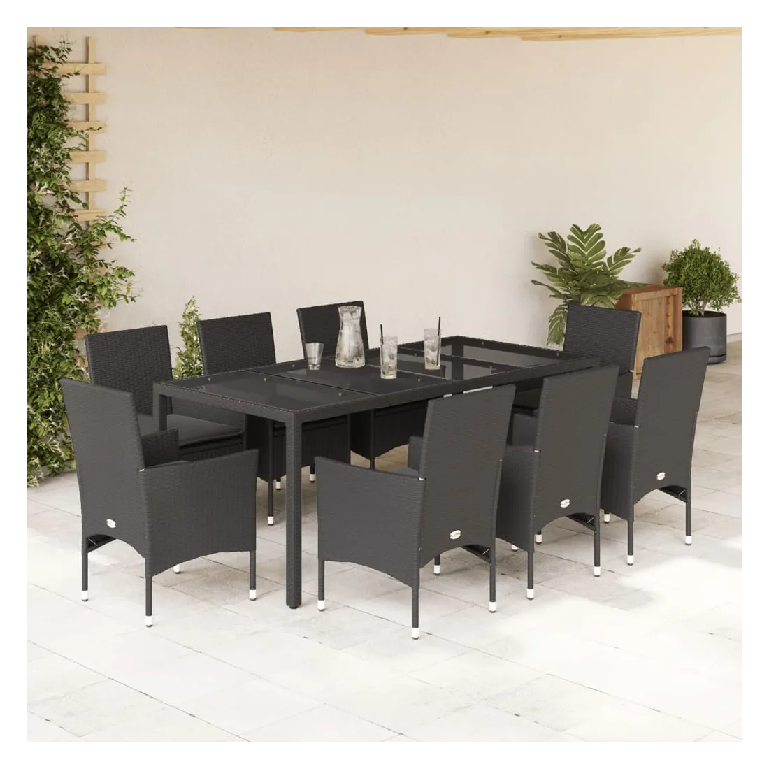 Cet ensemble de salle à manger de jardin est un excellent choix pour les repas en plein air ou pour vous détendre dans le jardin, dans l'arrière-cour ou sur la terrasse. Matériau durable : la résine tressée, également connue sous le nom de poly rotin, est un matériau synthétique solide et nécessitant peu d'entretien qui ressemble au rotin naturel. Il est léger, facile à nettoyer et couramment utilisé pour les meubles d'extérieur en raison de sa durabilité et de ses propriétés de résistance aux intempéries.Expérience d'assise confortable : cet ensemble de meubles d'extérieur, doté de coussins épais, offre une expérience d'assise confortable.Housse amovible et lavable : ces coussins de siège sont dotés de housses amovibles pour un lavage et un entretien faciles.Dessus en verre : le dessus de la table d'extérieur est fabriqué en verre trempé solide et durable, ce qui le rend facile à nettoyer avec un chiffon humide et ajoute une touche d'élégance à votre espace extérieur. Bon à savoir :Pour que vos meubles d'extérieur restent beaux, nous vous recommandons de les protéger avec une housse imperméable.