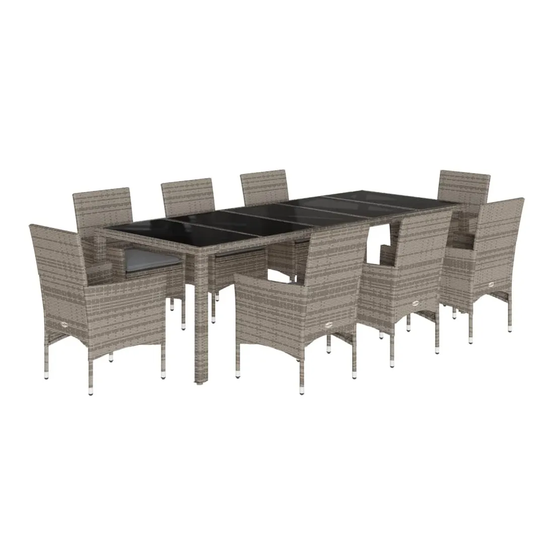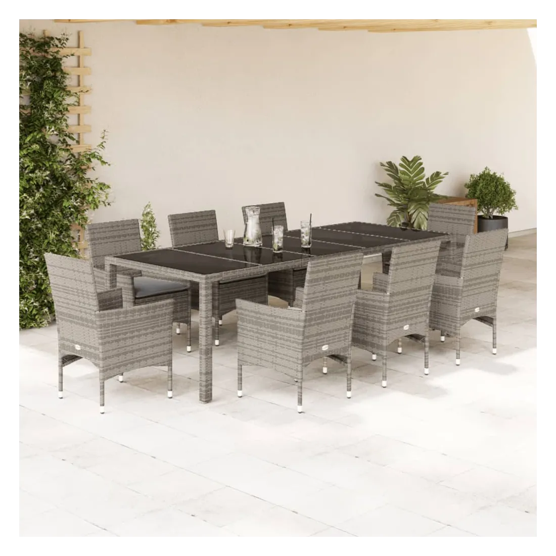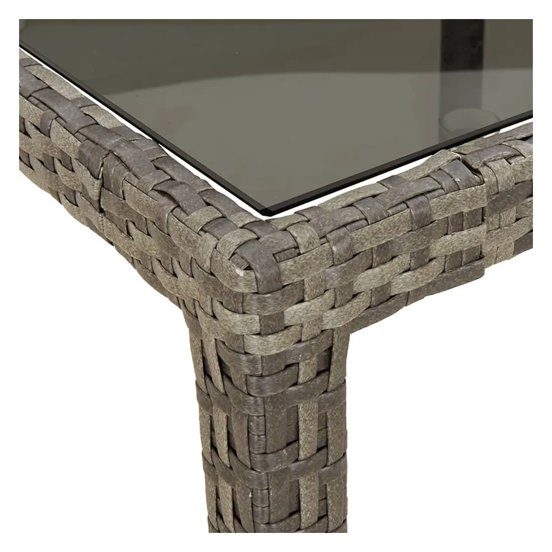 Cet ensemble de salle à manger de jardin est un excellent choix pour les repas en plein air ou pour vous détendre dans le jardin, dans l'arrière-cour ou sur la terrasse. Matériau durable : la résine tressée, également connue sous le nom de poly rotin, est un matériau synthétique solide et nécessitant peu d'entretien qui ressemble au rotin naturel. Il est léger, facile à nettoyer et couramment utilisé pour les meubles d'extérieur en raison de sa durabilité et de ses propriétés de résistance aux intempéries.Expérience d'assise confortable : cet ensemble de meubles d'extérieur, doté de coussins épais, offre une expérience d'assise confortable.Housse amovible et lavable : ces coussins de siège sont dotés de housses amovibles pour un lavage et un entretien faciles.Dessus en verre : le dessus de la table d'extérieur est fabriqué en verre trempé solide et durable, ce qui le rend facile à nettoyer avec un chiffon humide et ajoute une touche d'élégance à votre espace extérieur. Bon à savoir :Pour que vos meubles d'extérieur restent beaux, nous vous recommandons de les protéger avec une housse imperméable.