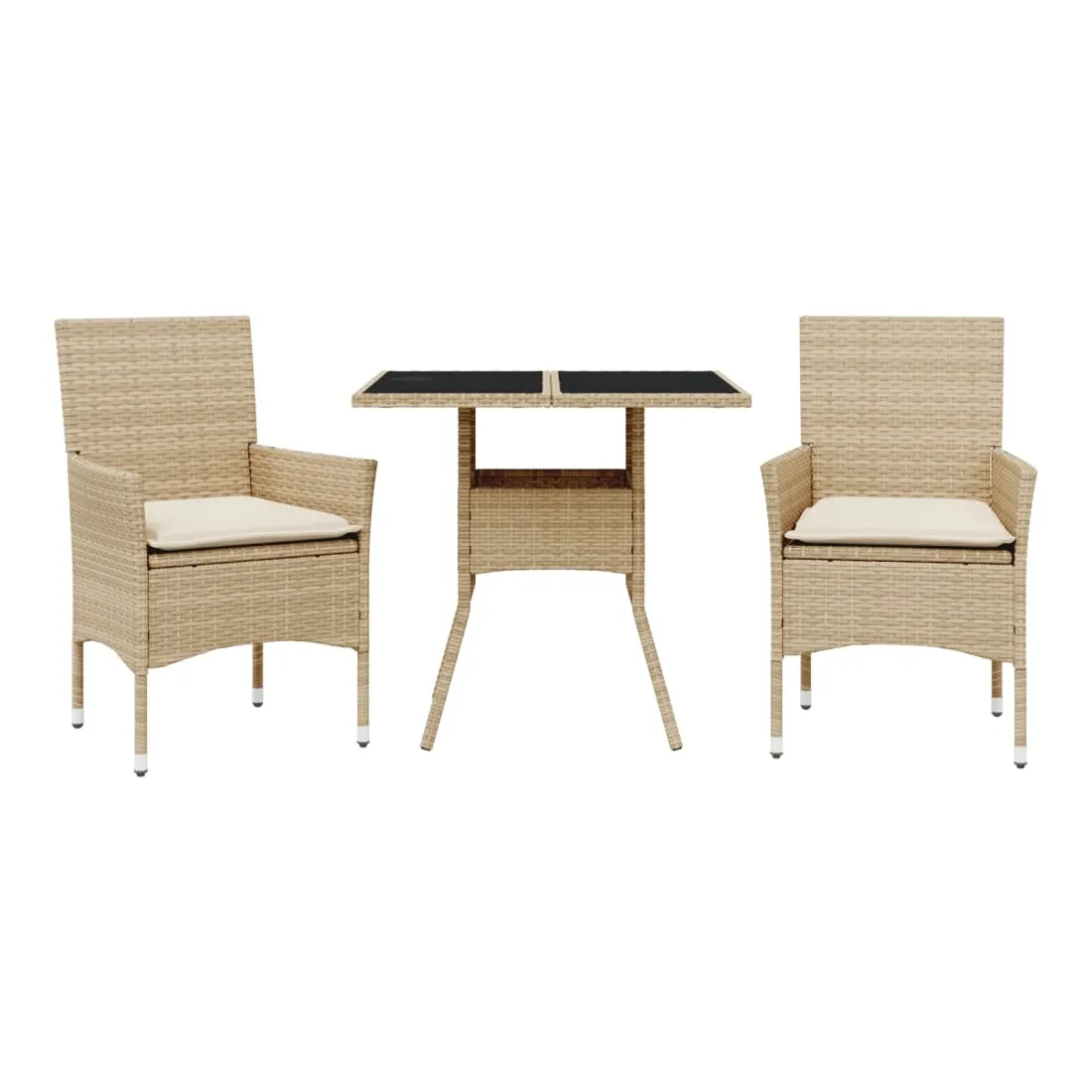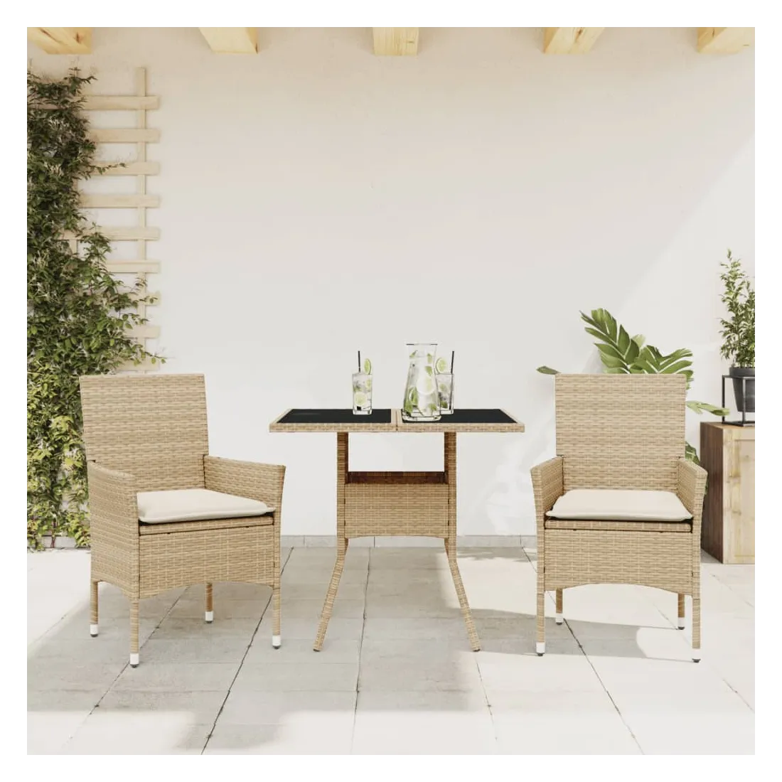 Cet ensemble de salle à manger de jardin est un excellent choix pour les repas en plein air ou pour vous détendre dans le jardin, dans l'arrière-cour ou sur la terrasse. Matériau durable : la résine tressée, également connue sous le nom de poly rotin, est un matériau synthétique solide et nécessitant peu d'entretien qui ressemble au rotin naturel. Il est léger, facile à nettoyer et couramment utilisé pour les meubles d'extérieur en raison de sa durabilité et de ses propriétés de résistance aux intempéries.Expérience d'assise confortable : cet ensemble de meubles d'extérieur, doté de coussins épais, offre une expérience d'assise confortable.Housse amovible et lavable : ces coussins de siège sont dotés de housses amovibles pour un lavage et un entretien faciles.Dessus en verre : le dessus de la table d'extérieur est fabriqué en verre trempé solide et durable, ce qui le rend facile à nettoyer avec un chiffon humide et ajoute une touche d'élégance à votre espace extérieur. Bon à savoir :Pour que vos meubles d'extérieur restent beaux, nous vous recommandons de les protéger avec une housse imperméable.