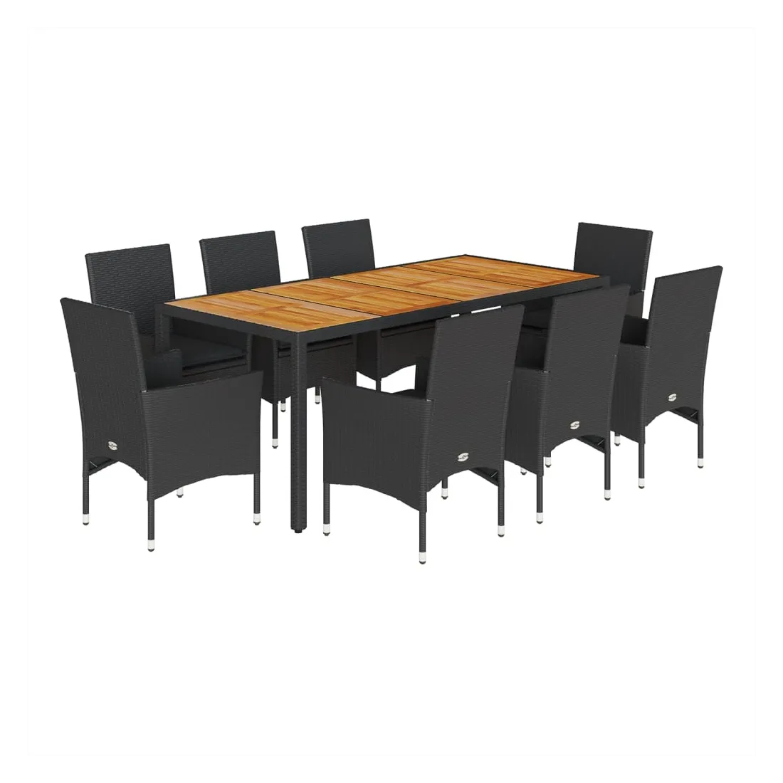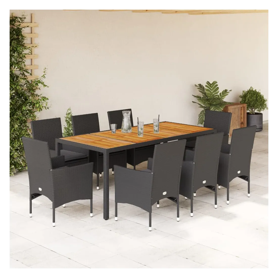 Cet ensemble de salle à manger de jardin est un excellent choix pour les repas en plein air ou pour vous détendre dans le jardin, dans l'arrière-cour ou sur la terrasse. Matériau durable : la résine tressée, également connue sous le nom de poly rotin, est un matériau synthétique solide et nécessitant peu d'entretien qui ressemble au rotin naturel. Il est léger, facile à nettoyer et couramment utilisé pour les meubles d'extérieur en raison de sa durabilité et de ses propriétés de résistance aux intempéries.Expérience d'assise confortable : cet ensemble de meubles d'extérieur, doté de coussins épais, offre une expérience d'assise confortable.Housse amovible et lavable : ces coussins de siège sont dotés de housses amovibles pour un lavage et un entretien faciles.Dessus stable et facile à nettoyer : cette table de jardin a un dessus en bois d'acacia robuste, durable et facile à nettoyer avec un chiffon humide. Bon à savoir :Pour que vos meubles d'extérieur restent beaux, nous vous recommandons de les protéger avec une housse imperméable.