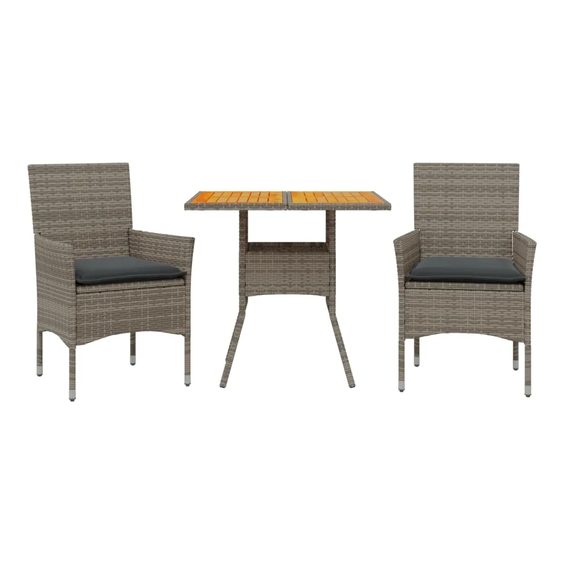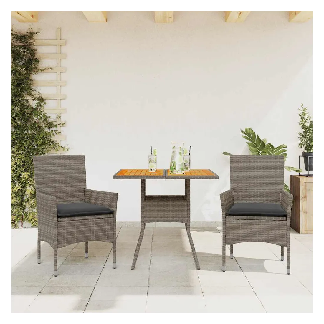 Cet ensemble de salle à manger de jardin est un excellent choix pour les repas en plein air ou pour vous détendre dans le jardin, dans l'arrière-cour ou sur la terrasse. Matériau durable : la résine tressée, également connue sous le nom de poly rotin, est un matériau synthétique solide et nécessitant peu d'entretien qui ressemble au rotin naturel. Il est léger, facile à nettoyer et couramment utilisé pour les meubles d'extérieur en raison de sa durabilité et de ses propriétés de résistance aux intempéries.Expérience d'assise confortable : cet ensemble de meubles d'extérieur, doté de coussins épais, offre une expérience d'assise confortable.Housse amovible et lavable : ces coussins de siège sont dotés de housses amovibles pour un lavage et un entretien faciles.Dessus stable et facile à nettoyer : cette table de jardin a un dessus en bois d'acacia robuste, durable et facile à nettoyer avec un chiffon humide. Bon à savoir :Pour que vos meubles d'extérieur restent beaux, nous vous recommandons de les protéger avec une housse imperméable.