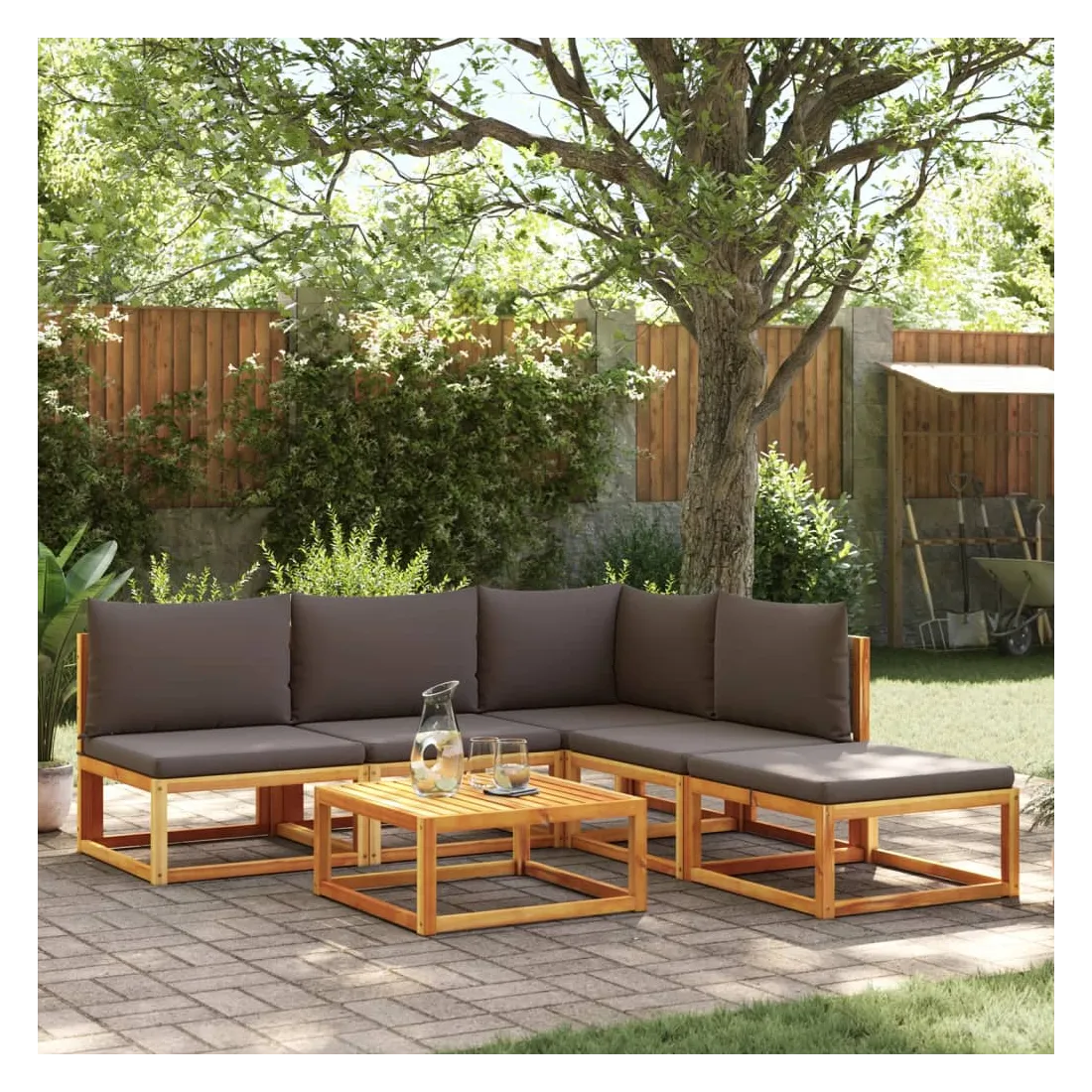 Ensemble de canapés de jardin 6 pièces avec coussins en bois d'acacia et rotin