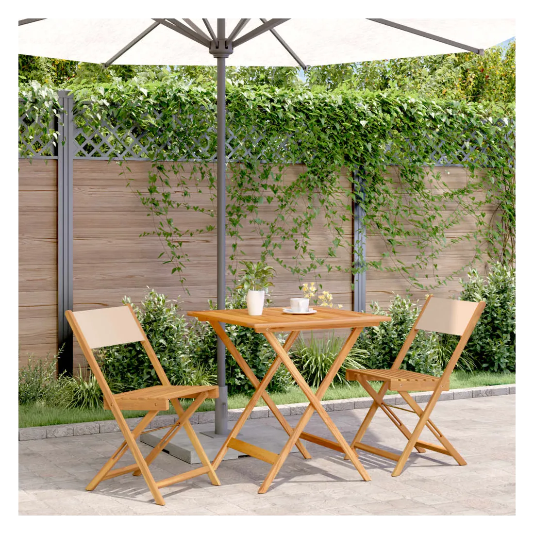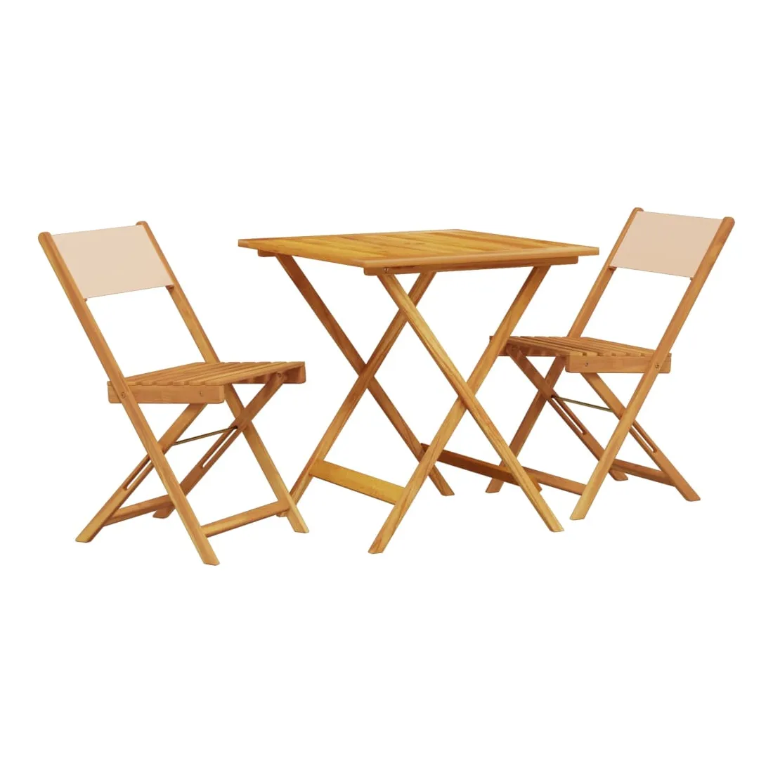 Savourez une tasse de café ou discutez avec votre famille et vos amis dans le jardin, l'arrière-cour ou sur le balcon avec cet ensemble de bistro ! Robuste et stable : le bois d'acacia massif est connu pour sa solidité et sa durabilité. Ses couleurs variées et ses grains uniques lui confèrent un aspect attrayant. Sa stabilité et sa résistance aux intempéries en font un matériau idéal pour la fabrication de meubles d'intérieur et d'extérieur.Conception pratique : la chaise d'extérieur ne comporte pas d'accoudoir, mais uniquement un dossier, ce qui vous permet d'être plus libre de vos mouvements tout en bénéficiant d'un grand confort.Dessus de table robuste : la table d'extérieur offre un excellent support pour accueillir vos boissons, collations, corbeilles de fruits et vos décorations préférées.Design pliable : la table et les chaises de salle à manger d'extérieur peuvent être facilement repliées lorsqu'elles ne sont pas utilisées pour faciliter le rangement et le transport. Bon à savoir :Pour que vos meubles d'extérieur restent beaux, nous vous recommandons de les protéger avec une housse imperméable.