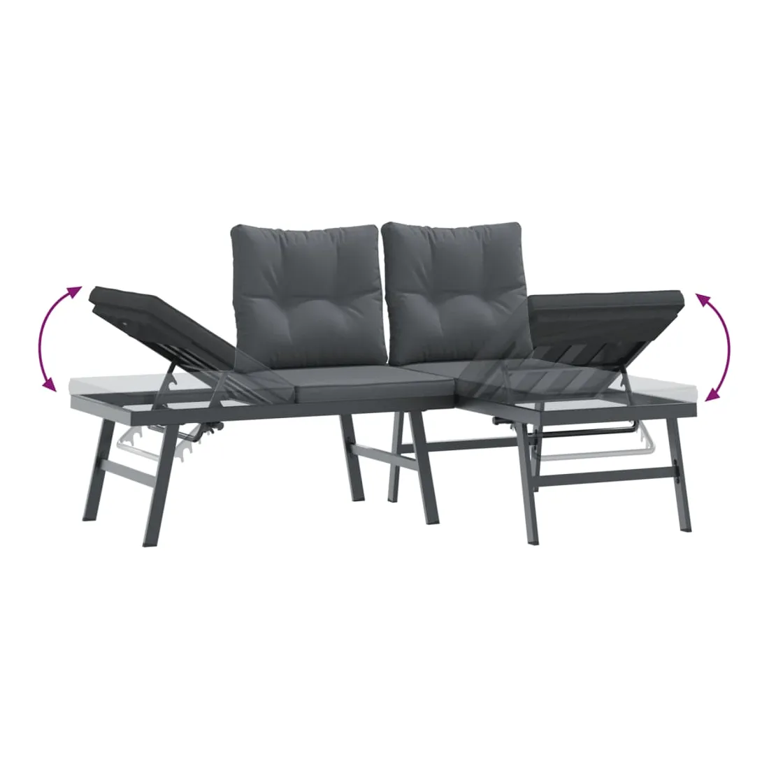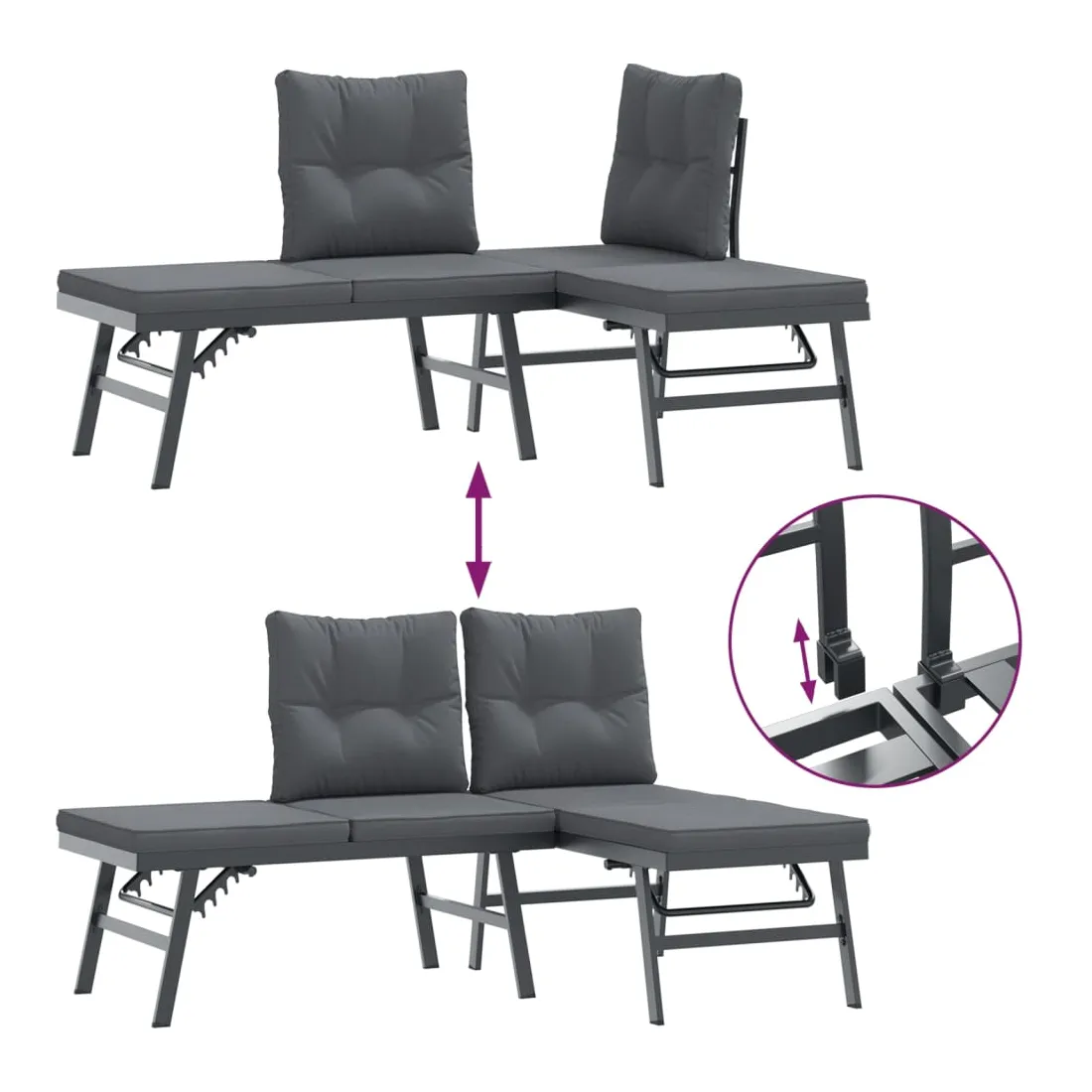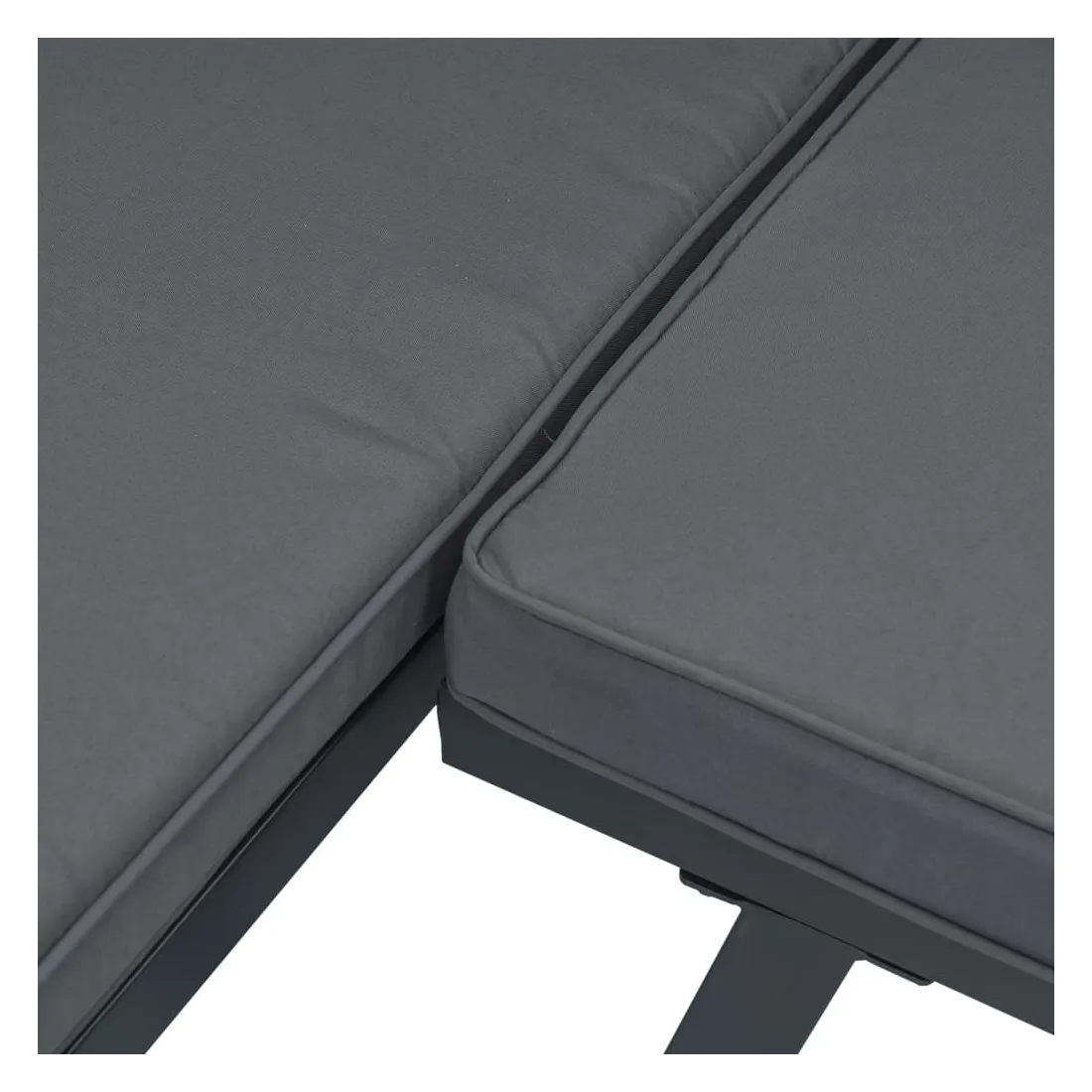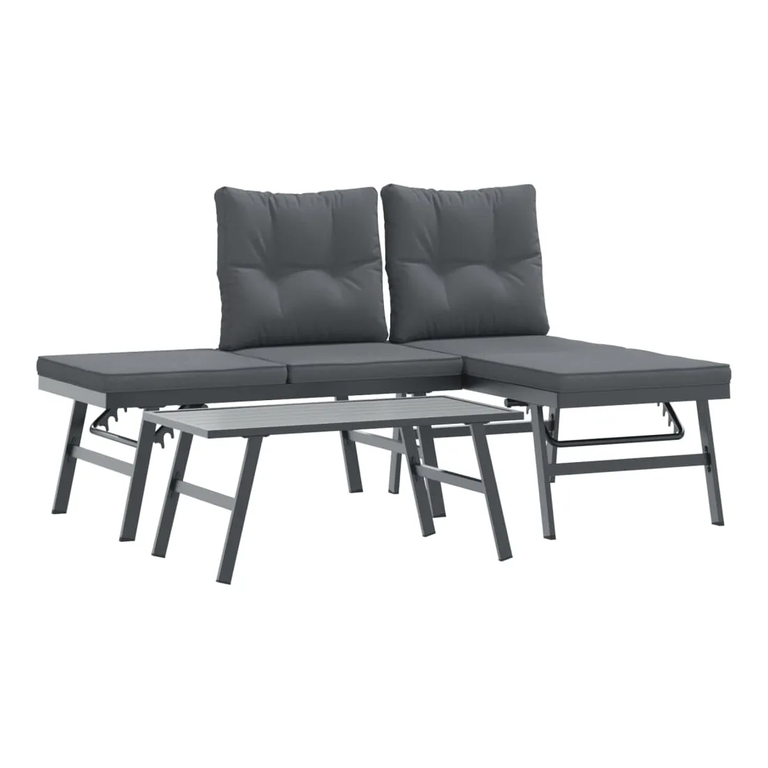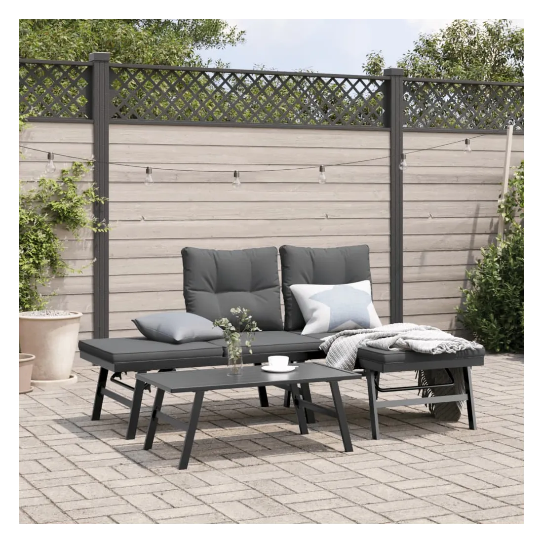 Cet ensemble de banc de jardin est parfait pour une utilisation à l'extérieur et il est conçu pour être le point central de votre jardin, terrasse ou patio, etc. Cadre robuste et stable : le cadre en acier enduit de poudre est solide, stable, durable et résistant à la corrosion et aux intempéries, ce qui garantit des performances durables.Siège latéral réglable : le petit panneau latéral de chaque canapé peut être relevé, transformant le canapé en une confortable chaise longue pour la relaxation. L'assise réglable peut être réglée sur trois niveaux différents pour répondre à vos besoins de lecture, de bain de soleil ou de sieste.Expérience d'assise confortable : ce mobilier d'extérieur, doté d'un coussin épais rembourré, offre une expérience d'assise confortable.Dessus de table robuste : le dessus du bout de table robuste est parfait pour placer vos boissons, aliments, et autres objets décoratifs.Design moderne : la table basse n'ajoute pas seulement du charme à votre espace de vie, elle s'intègre également sans effort à un large éventail de styles de mobilier. Bon à savoir :Pour que vos meubles d'extérieur restent beaux, nous vous recommandons de les protéger avec une housse imperméable.