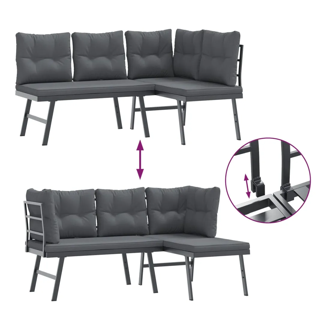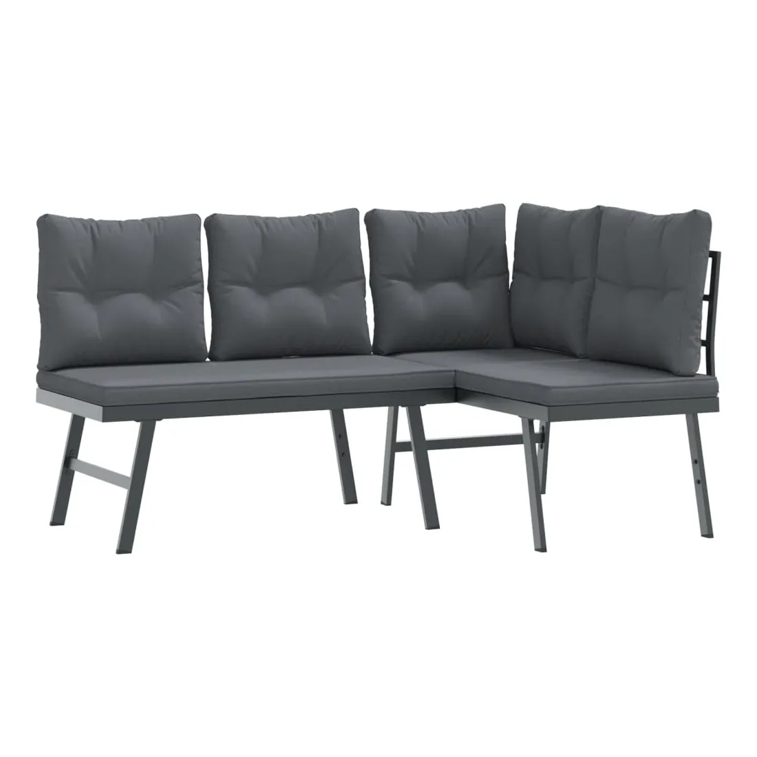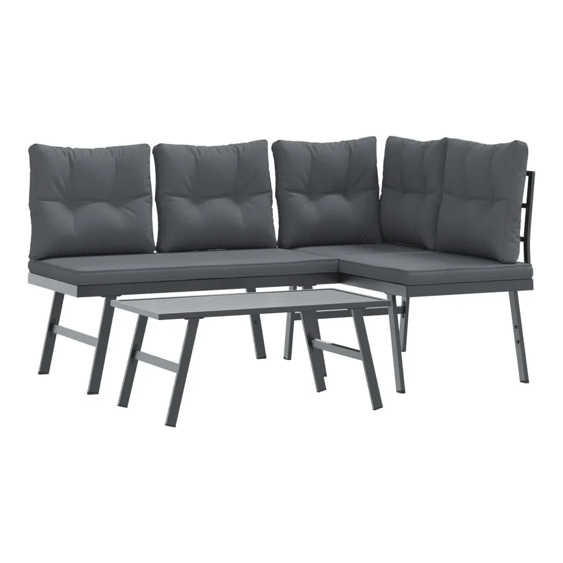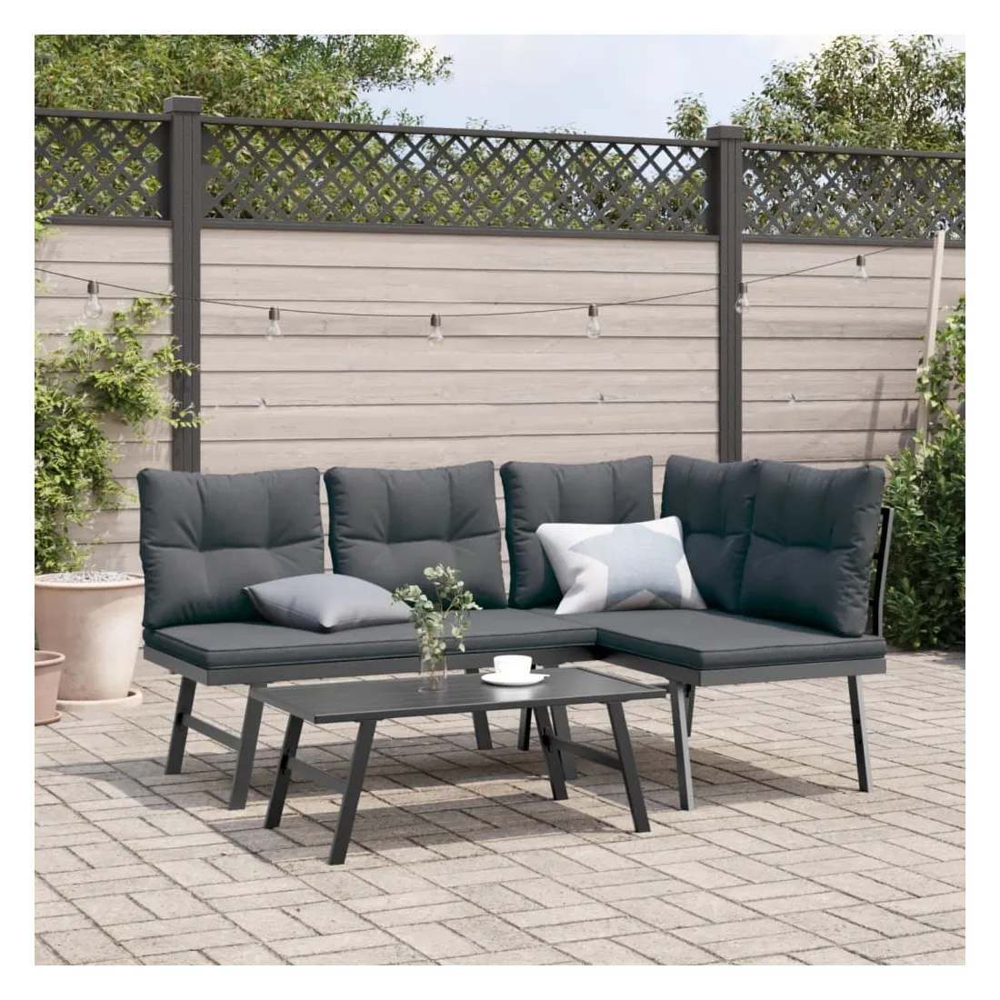 Cet ensemble de banc de jardin est parfait pour une utilisation à l'extérieur et il est conçu pour être le point central de votre jardin, terrasse ou patio, etc. Cadre robuste et stable : le cadre en acier enduit de poudre est solide, stable, durable et résistant à la corrosion et aux intempéries, ce qui garantit des performances durables.Design confortable : les dossiers légèrement incurvés ajoutent un confort d'assise supplémentaire au banc.Expérience d'assise confortable : ce mobilier d'extérieur, doté d'un coussin épais rembourré, offre une expérience d'assise confortable.Dessus de table robuste : le dessus du bout de table robuste est parfait pour placer vos boissons, aliments, et autres objets décoratifs.Design moderne : la table basse n'ajoute pas seulement du charme à votre espace de vie, elle s'intègre également sans effort à un large éventail de styles de mobilier. Bon à savoir :Pour que vos meubles d'extérieur restent beaux, nous vous recommandons de les protéger avec une housse imperméable.