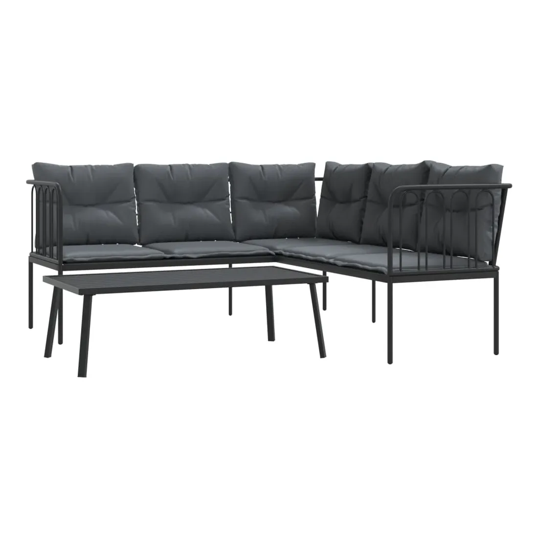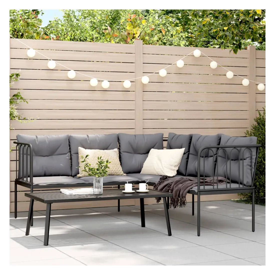 Cet ensemble de canapés de jardin est le complément parfait de votre jardin, terrasse ou patio, offrant un espace confortable et accueillant pour discuter avec la famille et les amis ou simplement se détendre et profiter de l'extérieur. Cadre robuste et stable : le cadre en acier enduit de poudre assure la solidité et la stabilité du meuble de jardin pour une utilisation quotidienne à l'extérieur.Durable et longue durée de vie : le tissu textilène est apprécié pour sa durabilité, résistance à l'eau et à la décoloration, facilité d'entretien et protection contre les rayons UV et la moisissure, ce qui en fait un choix idéal pour le meuble d'extérieur et les structures d'ombrage.Expérience d'assise confortable : ce mobilier d'extérieur, doté de coussins épais, offre une expérience d'assise confortable.Housse amovible et lavable : ces coussins de siège sont dotés de housses amovibles pour un lavage et un entretien faciles.Dessus robuste : le dessus robuste de la table de patio est idéal pour placer vos boissons ou tout autre article dont vous avez besoin à portée de main. Bon à savoir :Pour que vos meubles d'extérieur restent beaux, nous vous recommandons de les protéger avec une housse imperméable.