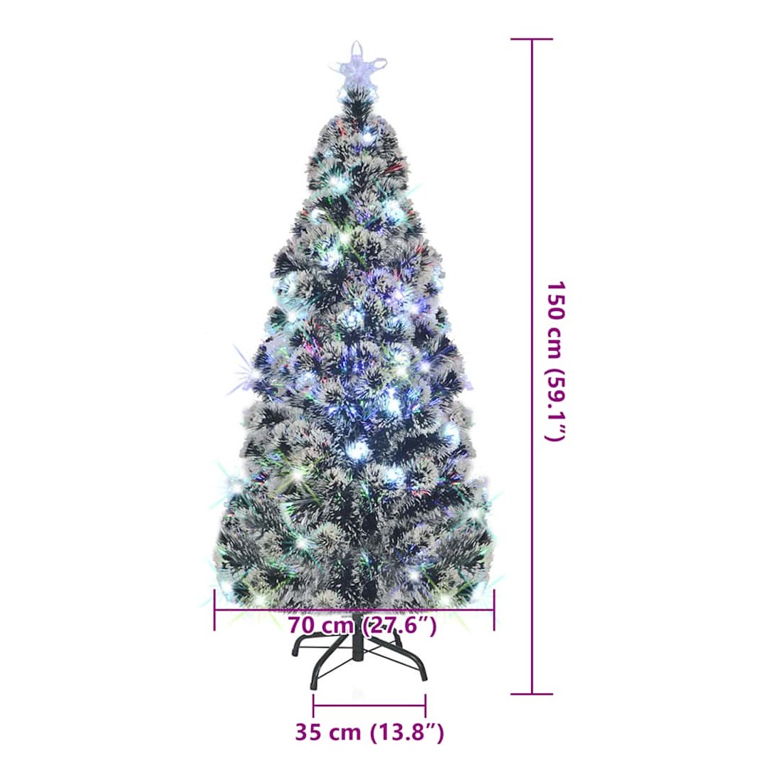 Arbre de Noël pré-éclairé avec support et LED 150 cm fibre optique