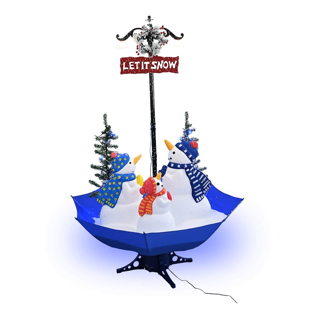 Arbre de Noël neigeux avec base de parapluie Bleu 170 cm PVC