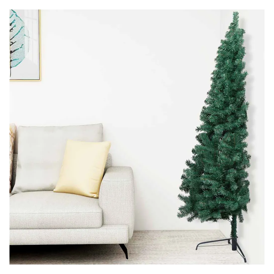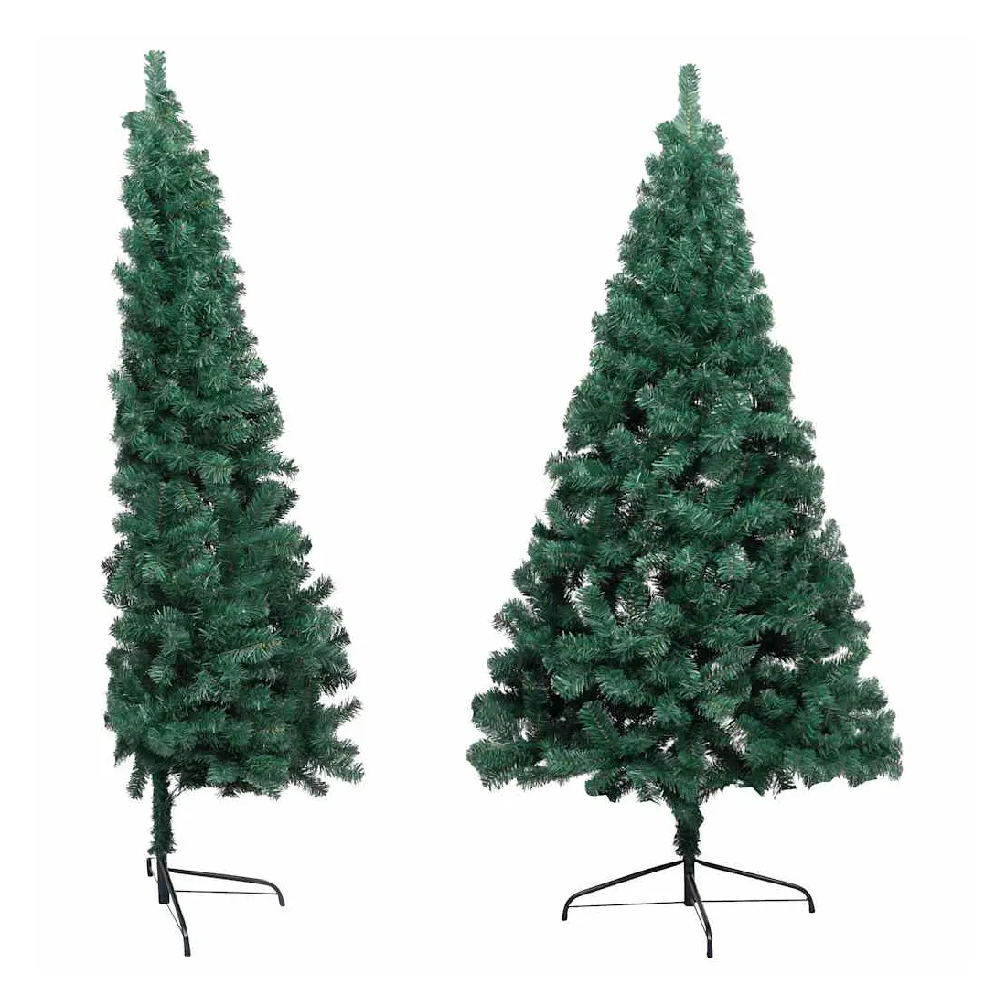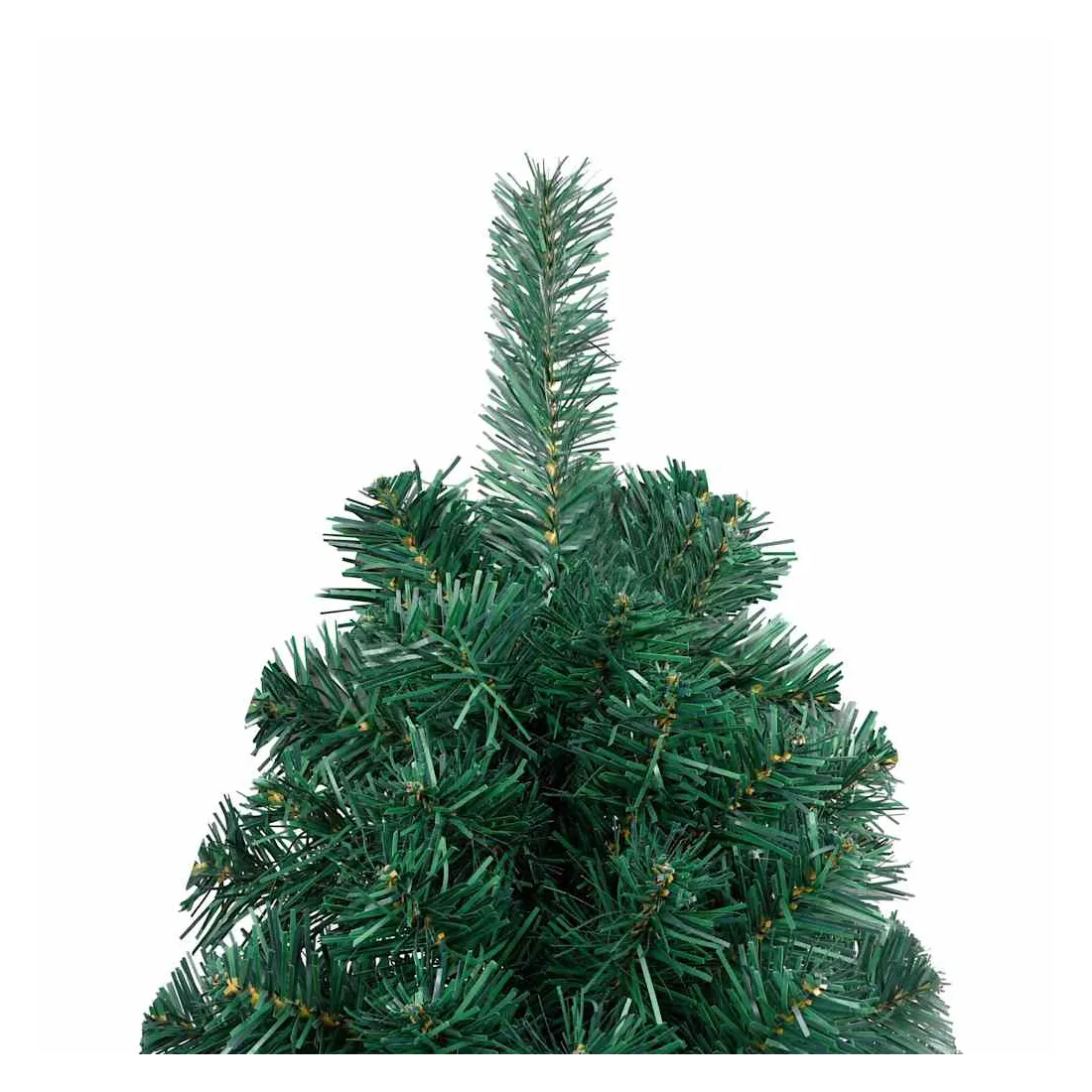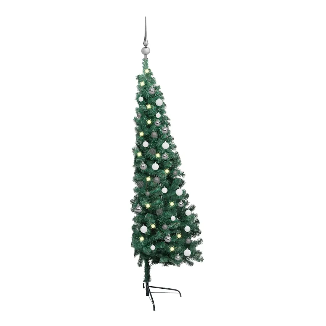 Demi-arbre de Noël artificiel pré-éclairé et boules vert 210 cm