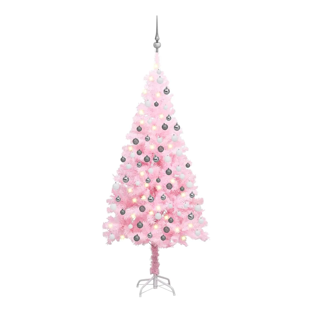 Arbre de Noël artificiel pré-éclairé et boules rose 120 cm PVC