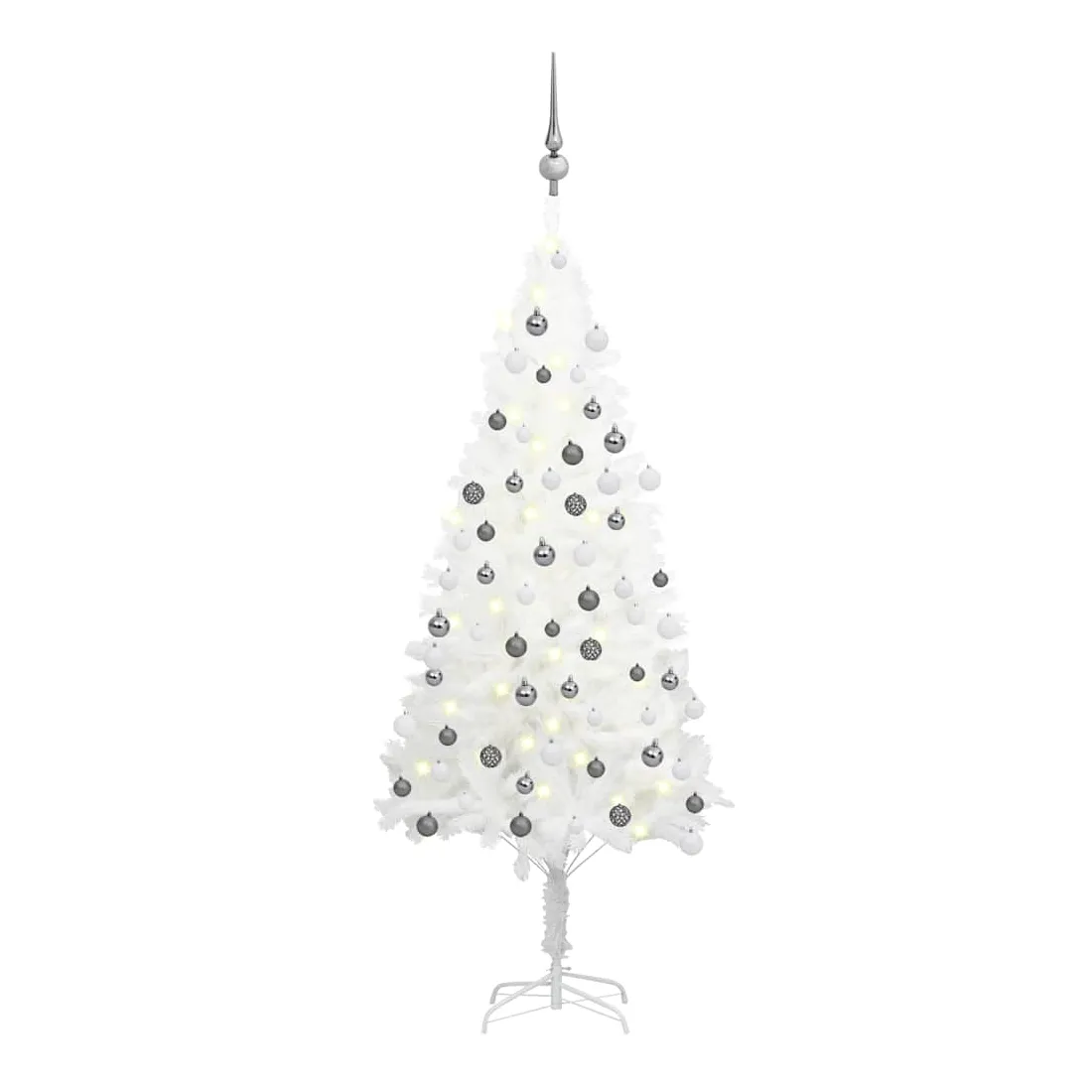 Arbre de Noël artificiel pré-éclairé et boules blanc 120 cm