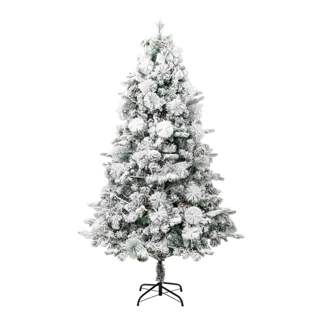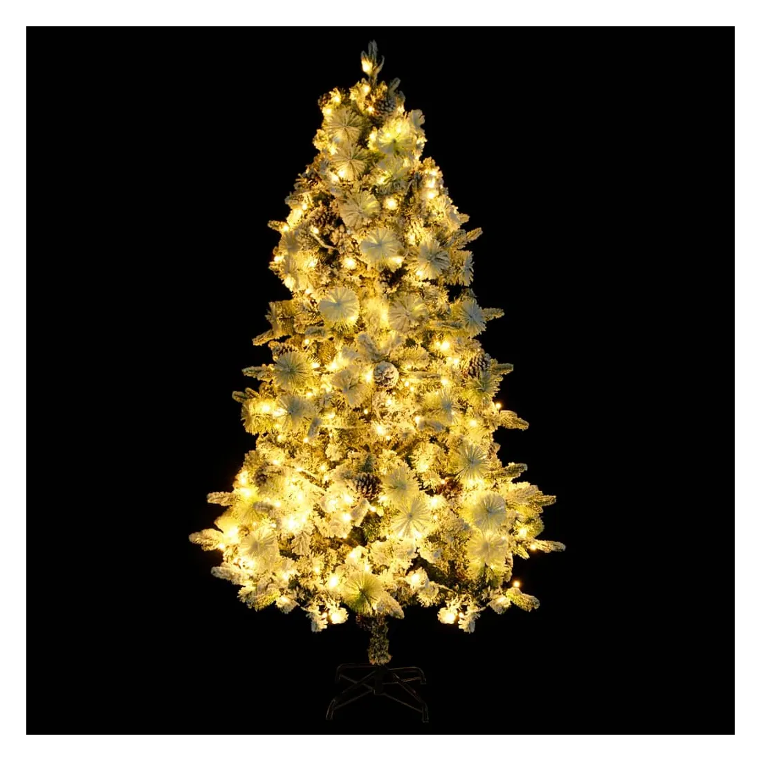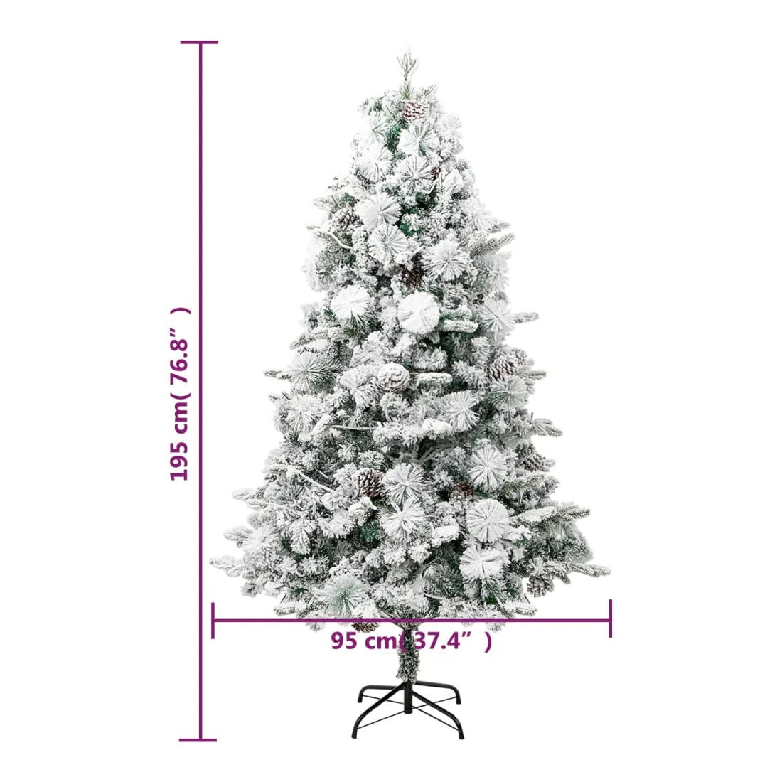 Sapin de Noël pré-éclairé avec neige floquée/cônes 195cm PVC/PE
