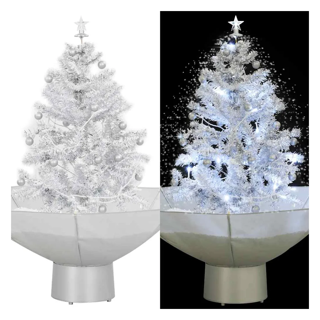 vidaXLCet arbre de Noël enneigé avec des boules de Noël et des lumières sera la pièce maîtresse de vos décorations de Noël. Ressemblant à une texture authentique, cet arbre de Noël artificiel se caractérise par des branches réalistes. Il comprend une mélodie joyeuse, des ornements de fête, des lumières et de la fausse neige qui tombera majestueusement de l’arbre une fois allumé, ce qui crée une atmosphère idéale pour le festival. La pompe intégrée transfère la neige de la base et continue de la pulvériser par le haut ; la base en forme de parapluie inclus ramassera la neige et avec un contrôle vous réglez le taux de chute de neige, d'un doux saupoudrage à un joyeux tourbillon de blanc, de sorte que vous puissiez passer tout Noël, même tout l'hiver, à regarder la neige tomber et se couvrir les branches. De plus, léger et durable, le sapin de Noël peut être utilisé chaque année, ce qui en fait un choix très économique par rapport à un vrai arbre. L'arbre de Noël est facile à assembler car il dispose d'un système de plug-in simple. Créez une atmosphère de Noël unique dans votre maison ! C'est un spectacle que les amis et la famille vont adorer.