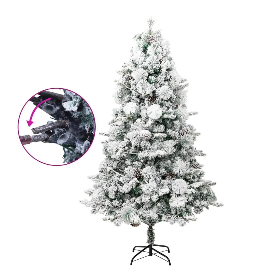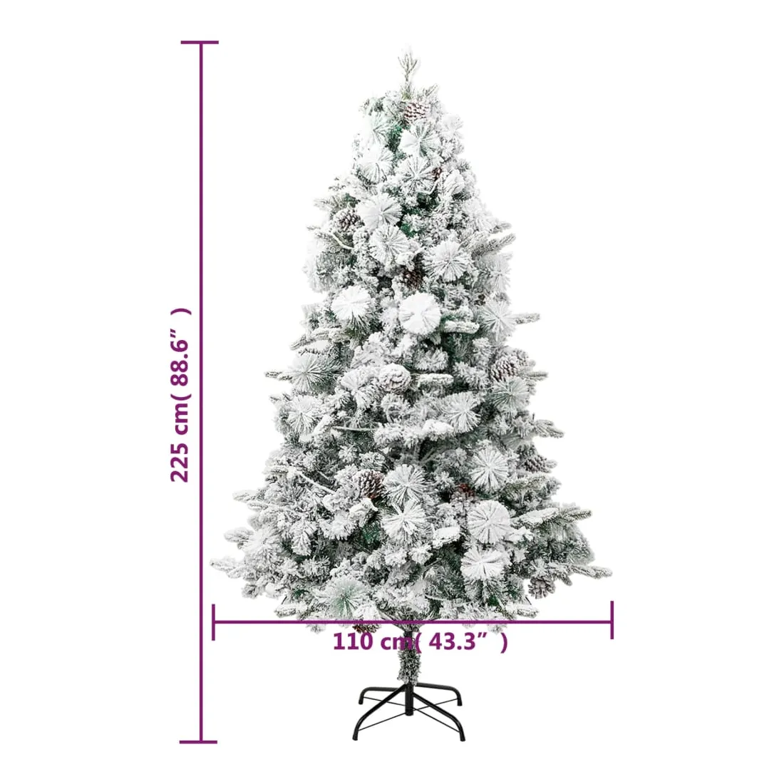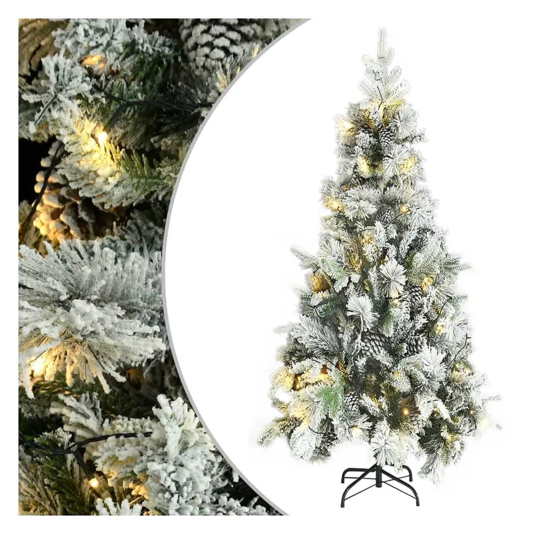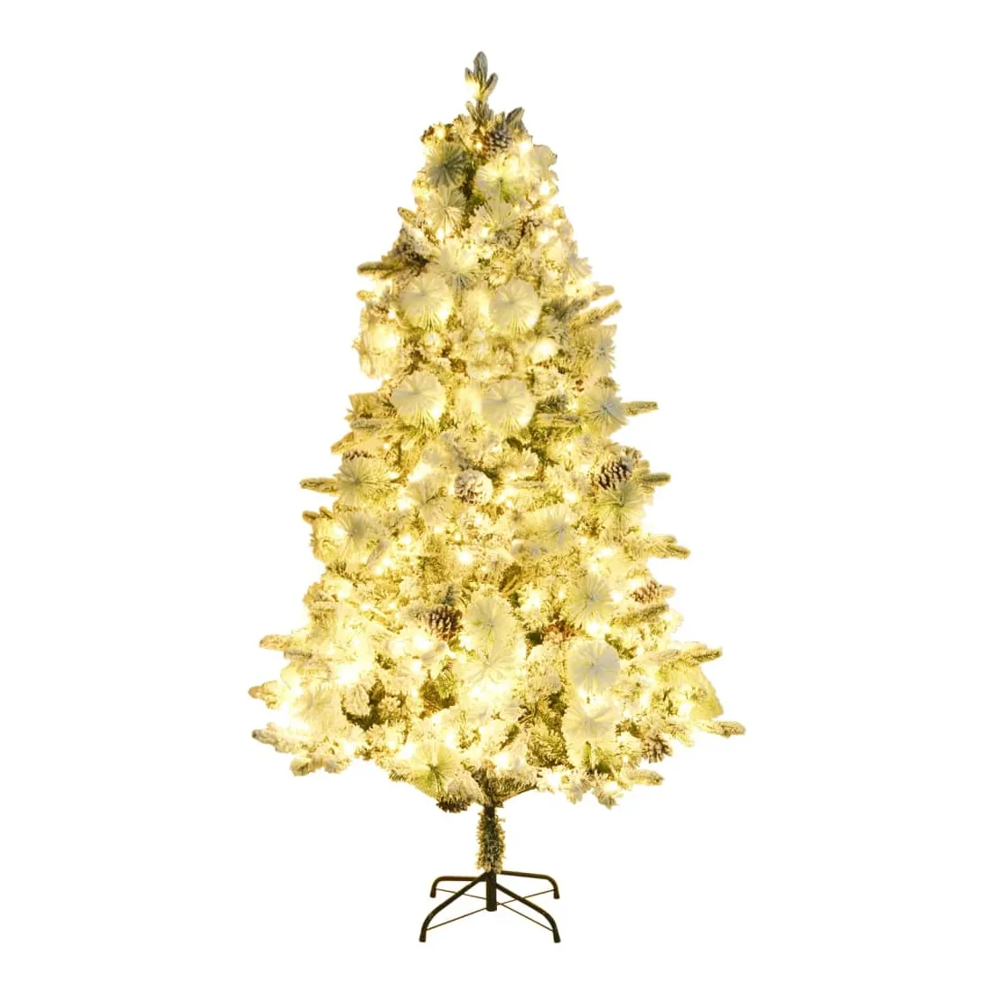 Sapin de Noël pré-éclairé avec neige floquée/cônes 225cm PVC/PE