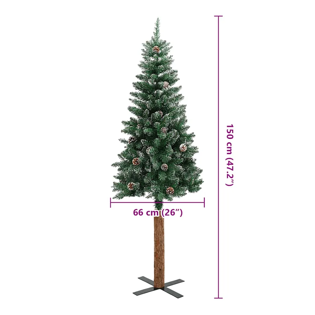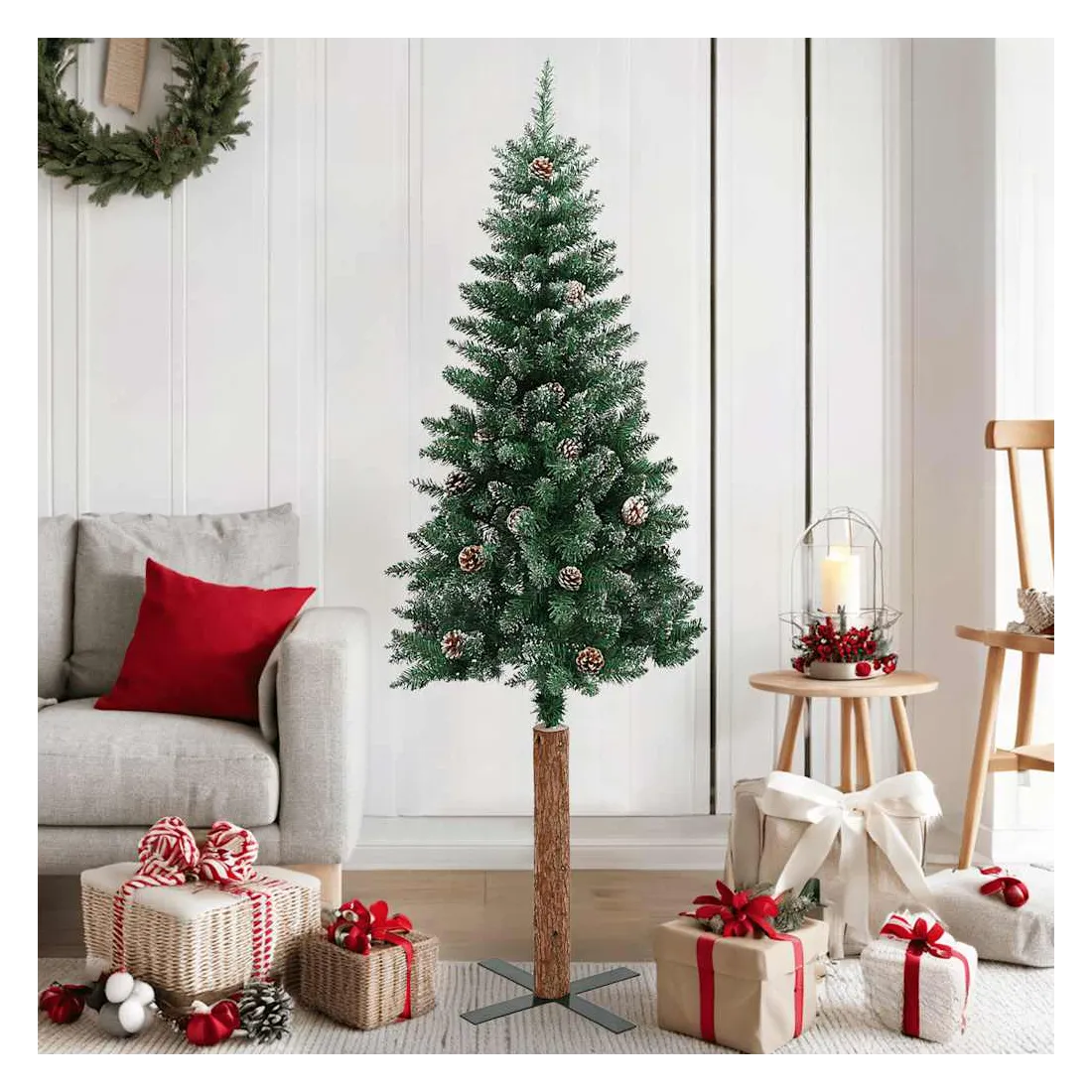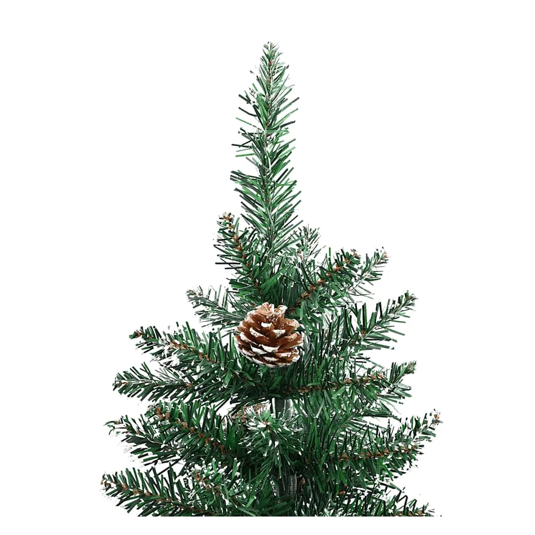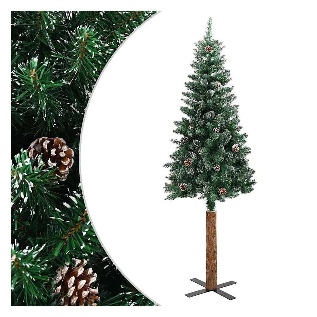 Notre sapin de Noël mince forme la pièce maîtresse de vos décorations de Noël, créant une ambiance de Noël unique ! Ce magnifique arbre de Noël, avec ses branches en aiguilles, ses cônes décoratifs et sa neige blanche sur les pointes, est très réaliste dans sa forme et son apparence. Fabriqué en PVC, en bois de pin massif et en acier revêtu de poudre, notre arbre est extrêmement stable et durable. Le sapin de Noël peut être utilisé à nouveau chaque année, ce qui en fait un choix très économique par rapport à un véritable arbre. En outre, il peut être utilisé à l’intérieur et à l’extérieur sous abri.