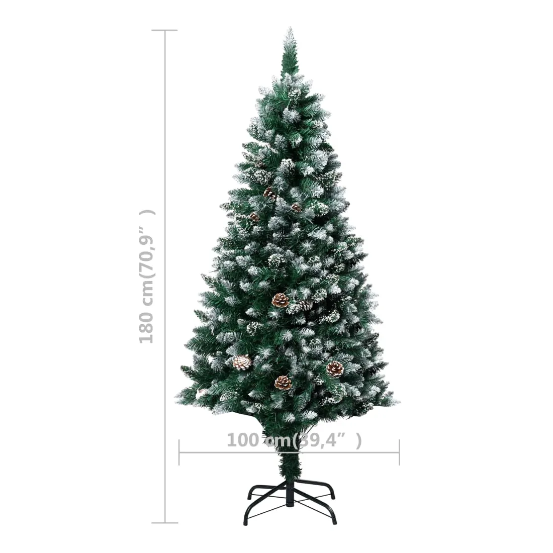 Sapin de Noël avec pommes de pin et neige blanche 180 cm