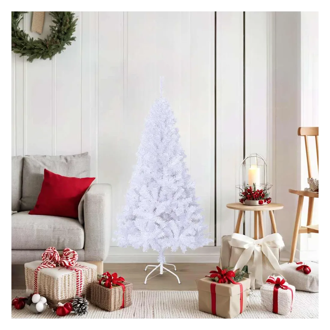 Notre sapin de Noël artificiel blanc forme la pièce maîtresse de vos décorations de Noël, créant une ambiance de Noël unique ! Ce magnifique sapin de Noël en PVC est très réaliste dans sa forme et son apparence. Il a des branches très épaisses, ce qui rend l'arbre encore plus réaliste. Toutes les branches peuvent être alignées, ce qui vous permet d'ajuster l'arbre dans la forme parfaite. Le support métallique inclus offre à votre arbre une stabilité optimale. L'arbre de Noël peut être réutilisé chaque année, ce qui en fait un choix très économique par rapport à un vrai arbre. De plus, il peut être utilisé aussi bien à l'intérieur qu'à l'extérieur sous abri.