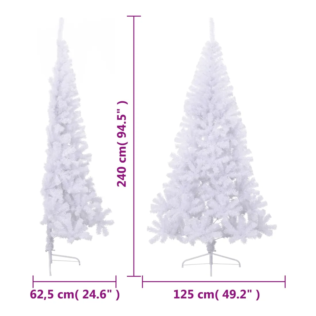 Sapin de Noël artificiel moitié avec support blanc 240 cm PVC