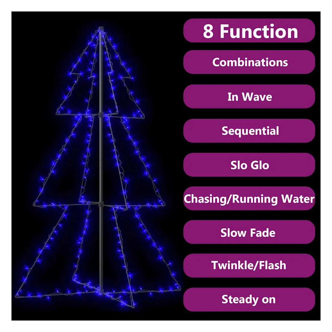 Cet arbre de Noël est spécialement conçu pour décorer votre arbre de Noël et créera l'atmosphère idéale pour votre Noël. Les lumières sont constituées de 200 LED haute puissance très efficaces en énergie et émettant une lumière brillante. Conçues avec 8 effets lumineux différents : une combinaison de tous les effets, l'éclairage lent, le scintillement/flash, la vague, la poursuite/le ruissellement de l'eau, le séquentiel, l'allumage permanent et le fondu lent, il s'illumine magnifiquement et crée une ambiance de vacances magique. Il attirera tous les regards, surtout le soir, et sert également de source confortable de lumière ambiante. L’arbre de Noël sous forme de cône autoportant peut être facilement et solidement fixé au sol avec le matériel de montage fourni. Remarque : l’USB inclus n’est pas étanche, donc cette partie doit éviter l’eau, mais grâce au câble de 5 m, l'arbre peut être utilisé à l'extérieur car le câble et le produit sont étanches. Ce produit est doté d'un connecteur USB, mais la source d'alimentation certifiée de USB 5V n'est pas incluse.