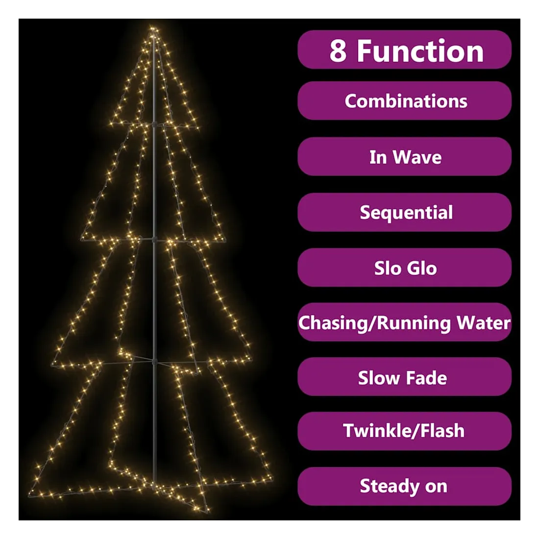 vidaXLCet arbre de Noël est spécialement conçu pour décorer votre arbre de Noël et créera l'atmosphère idéale pour votre Noël. Les lumières sont constituées de 360 LED haute puissance très efficaces en énergie et émettant une lumière brillante. Conçues avec 8 effets lumineux différents : une combinaison de tous les effets, l'éclairage lent, le scintillement/flash, la vague, la poursuite/le ruissellement de l'eau, le séquentiel, l'allumage permanent et le fondu lent, il s'illumine magnifiquement et crée une ambiance de vacances magique. Il attirera tous les regards, surtout le soir, et sert également de source confortable de lumière ambiante. L’arbre de Noël sous forme de cône autoportant peut être facilement et solidement fixé au sol avec le matériel de montage fourni. Remarque : l’USB inclus n’est pas étanche, donc cette partie doit éviter l’eau, mais grâce au câble de 5 m, l'arbre peut être utilisé à l'extérieur car le câble et le produit sont étanches. Ce produit est doté d'un connecteur USB, mais la source d'alimentation certifiée de USB 5V n'est pas incluse.