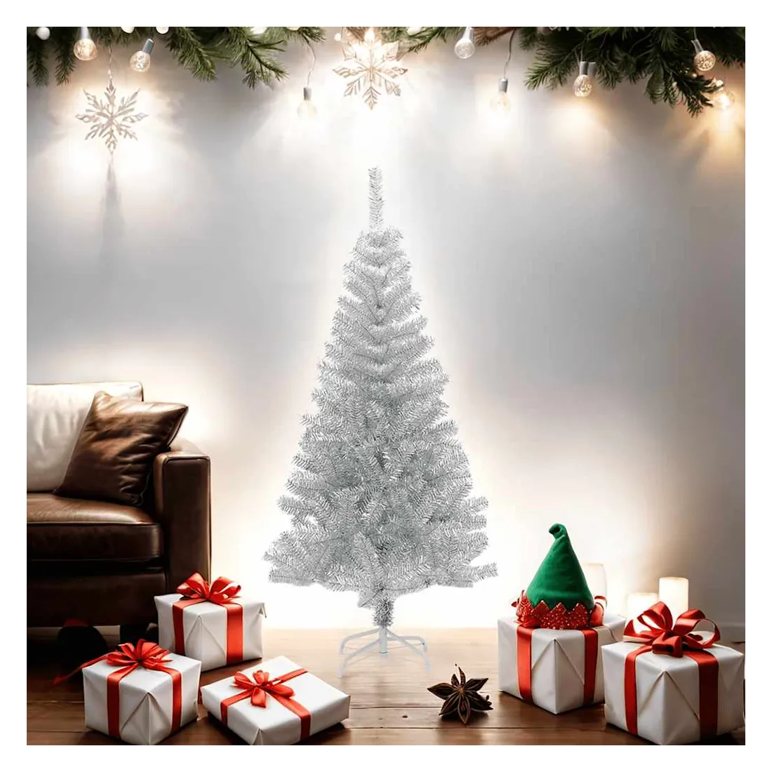 Notre sapin de Noël artificiel argenté forme la pièce maîtresse de vos décorations de Noël, créant une ambiance de Noël unique ! Ce magnifique sapin de Noël en PET est très réaliste dans sa forme et son apparence. Les pieds en acier ajoutent à sa stabilité. L'arbre de Noël peut être réutilisé chaque année, ce qui en fait un choix très économique par rapport à un vrai arbre. De plus, il peut être utilisé à l'intérieur ainsi qu'à l'extérieur sous abri.