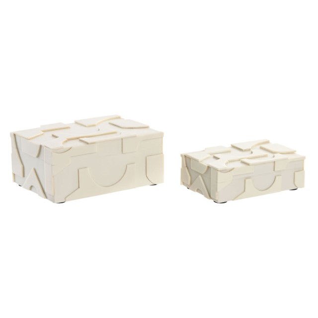 Scatola-Portagioie Home ESPRIT Bianco Resina Osso 18 x 13 x 7,5 cm (2 Pezzi)