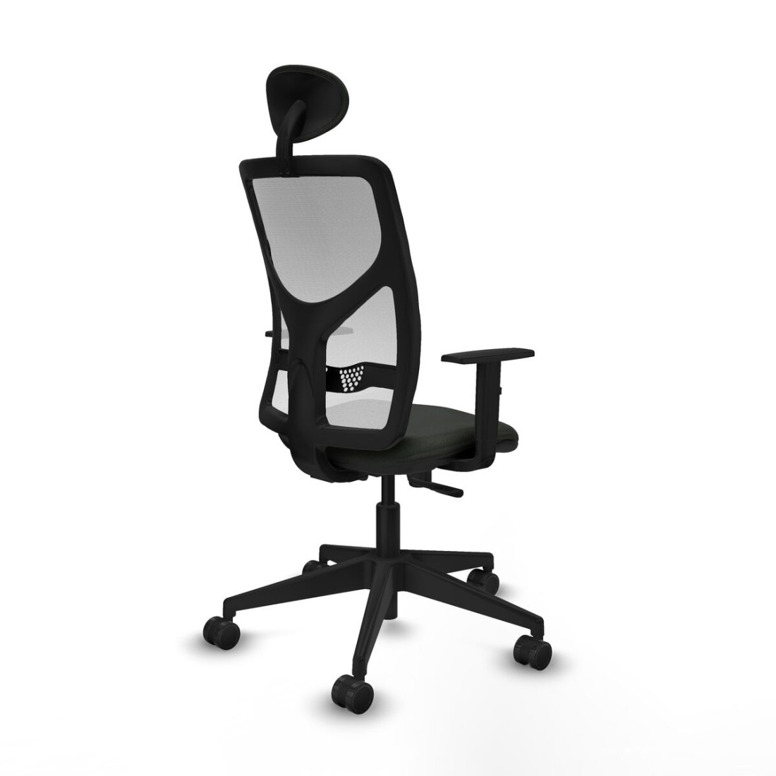 Piqueras y CrespoLa sedia da ufficio Motilla 1D066N1 di Piqueras y Crespo è una soluzione ergonomica progettata per offrire comfort e funzionalità durante giornate lavorative fino a 8 ore. Il design include uno schienale fisso in rete traspirante 100% PES, che favorisce la ventilazione e riduce l’accumulo di calore, aumentando il comfort nell’uso prolungato. Dispone di bracci regolabili 1D, per adattare altezza e angolo a un supporto ergonomico personalizzato, insieme a un supporto lombare regolabile L1D e un poggiatesta fisso che offrono sostegno adeguato a collo e zona lombare, aiutando a mantenere una postura corretta. Il meccanismo sincronizzato con 3 posizioni permette di reclinare con controllo schienale e seduta, offrendo flessibilità posturale per prevenire fastidi e affaticamento. La seduta, con imbottitura in schiuma sagomata da 50 mm e densità 25 kg/m³, garantisce un supporto confortevole e duraturo, mentre l’interno in legno laminato con schiuma poliuretanica e la finitura esterna in plastica da 1 mm assicurano robustezza e resistenza. La base piramidale in nylon e fibra di vetro con cinque razze di 640 mm di diametro assicura stabilità, e le ruote in nylon da 65 mm con assi in acciaio facilitano spostamenti fluidi e silenziosi. La sedia offre una regolazione in altezza della seduta da 48 cm a 58 cm, con altezza totale regolabile tra 125 e 135 cm, adattandosi a diverse stature e scrivanie. La finitura in colore nero si abbina a qualsiasi ambiente professionale o domestico, conferendo un aspetto sobrio ed elegante. Con capacità di carico massimo di 120 kg e certificazione UNE-EN-1335, questo modello rispetta gli standard di qualità e sicurezza per mobili ergonomici. La sedia Motilla rappresenta un’opzione tecnica e funzionale per chi cerca una seduta comoda e adattabile per spazi di lavoro prolungati, senza rinunciare a traspirabilità e supporto adeguato.