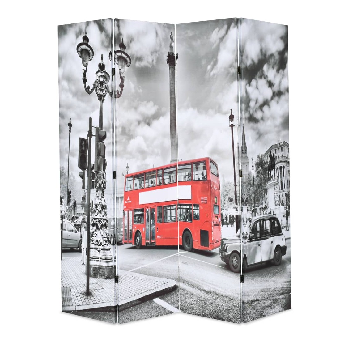 Cette cloison de séparation de 160 cm de largeur et de 170 cm de hauteur est idéale pour créer un espace intime ou séparer une partie de la chambre. Elle ajoutera une touche pratique et décorative à votre chambre à coucher, salon ou bureau. Le paravent a un cadre en bois solide et est recouvert de toile durable avec une belle impression photo monochrome représentant une rue de Londres avec un bus à deux étages emblématique en rouge contrastant et ajoutera une touche de charme moderne à votre intérieur. La cloison de séparation de pièce peut également être facilement repliée pour économiser de l'espace lorsqu'elle n'est pas utilisée.