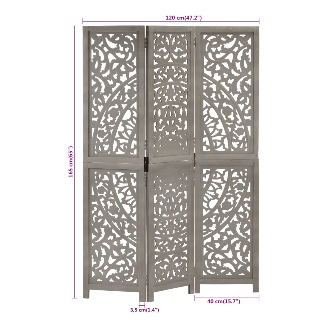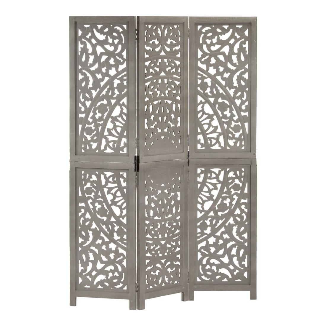 Cloison de séparation 3 panneaux Gris 120x165 cm Bois manguier
