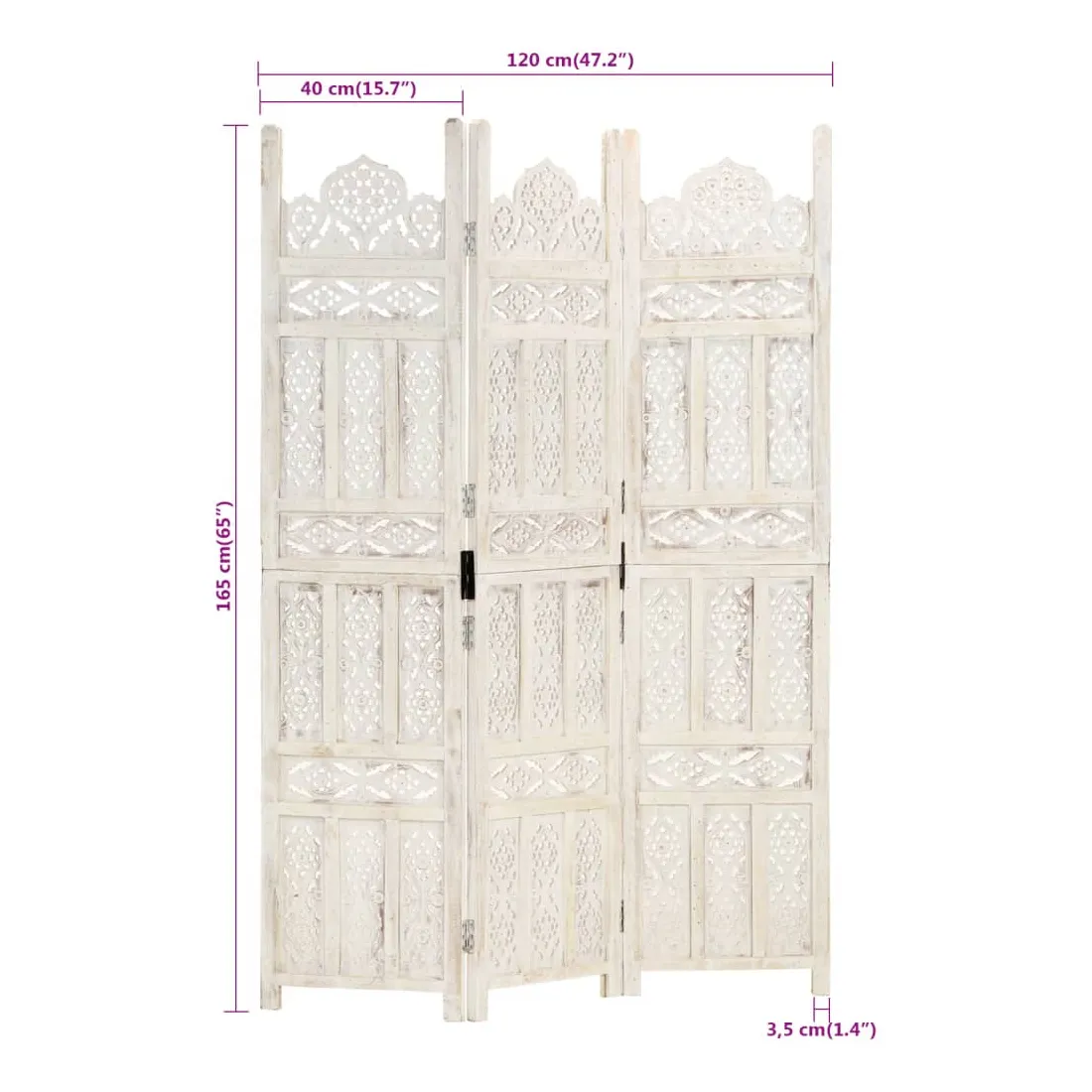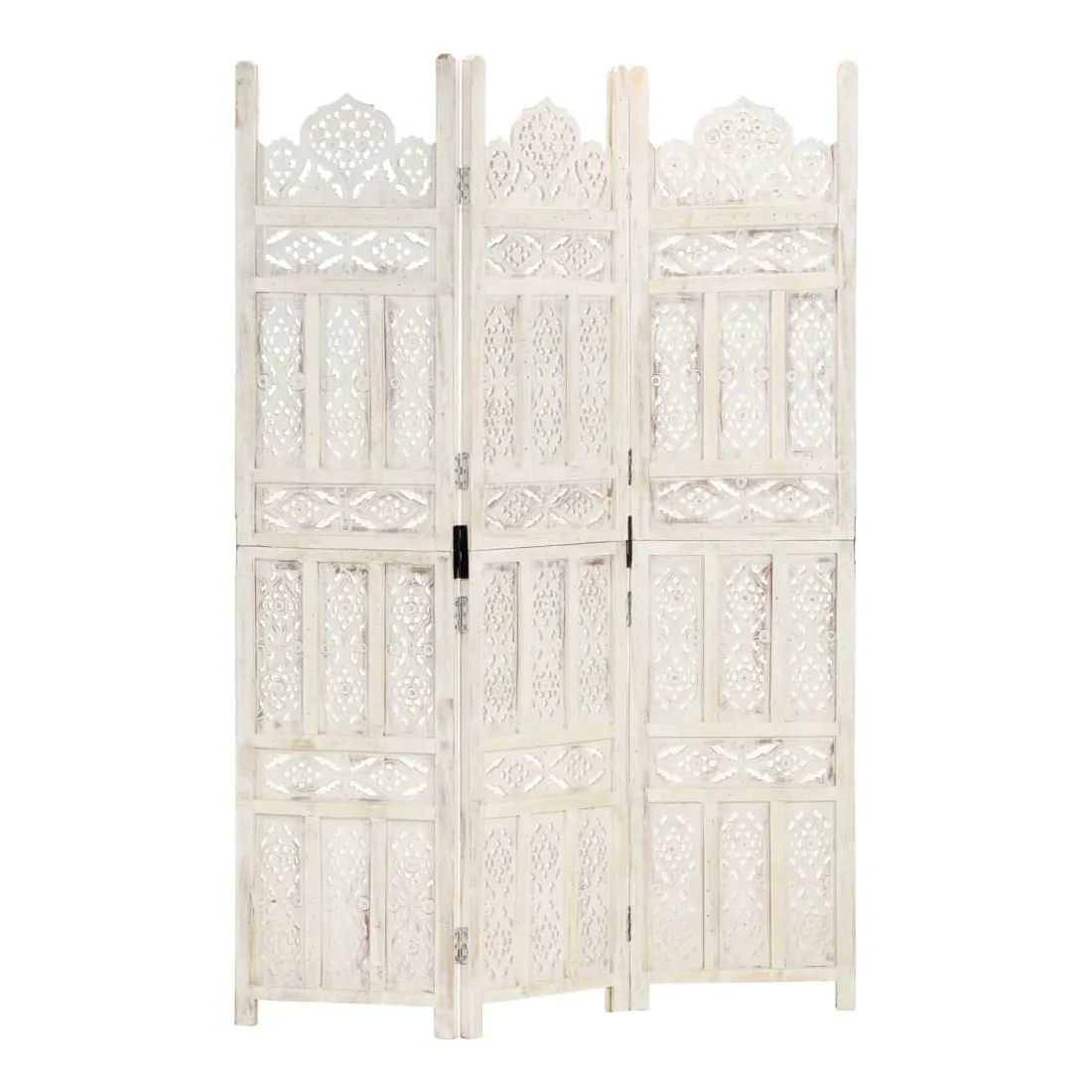 Cloison de séparation 3 panneaux Blanc 120x165 cm Bois manguier