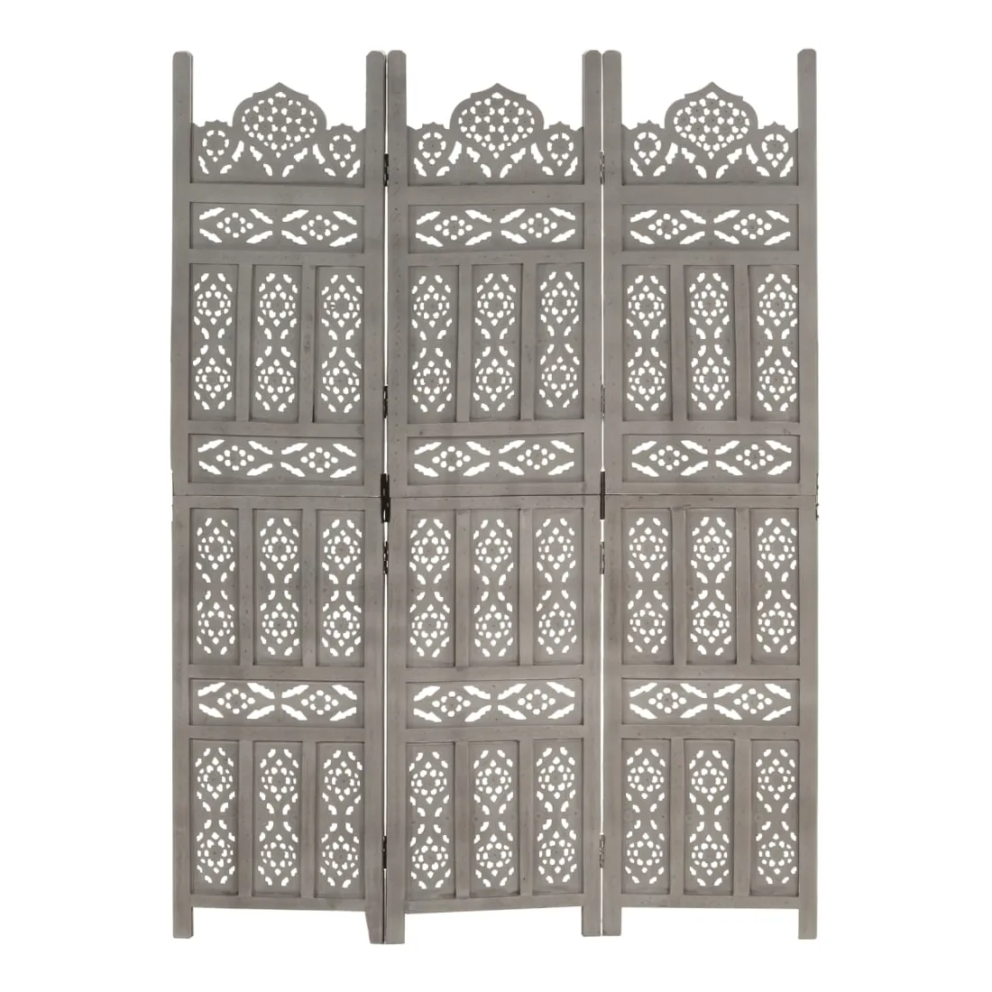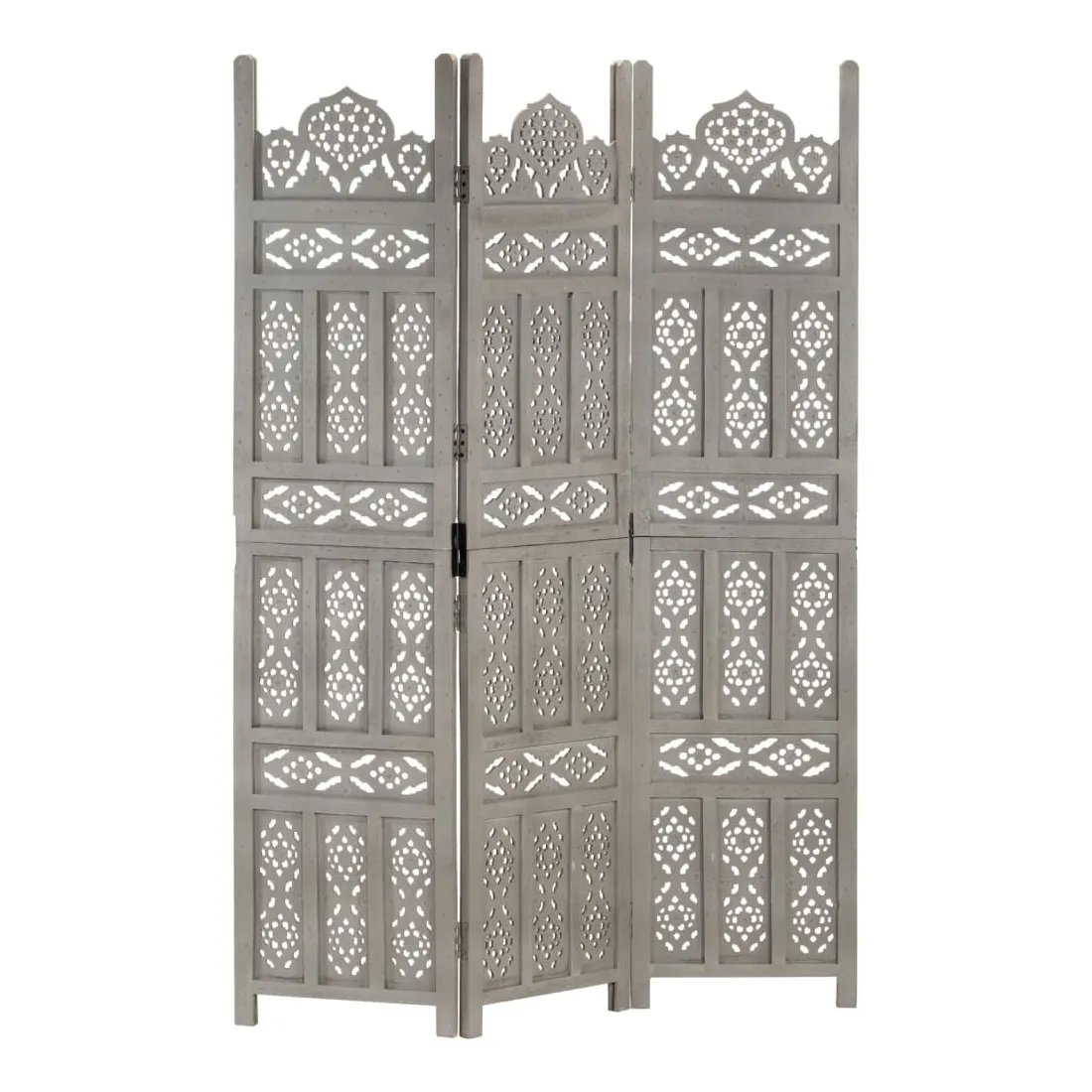 Cloison de séparation 3 panneaux Gris 120x165 cm Bois manguier