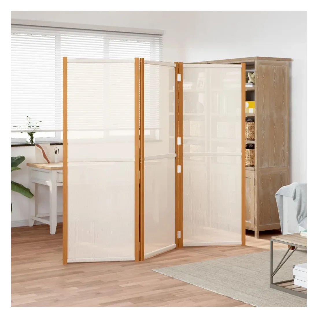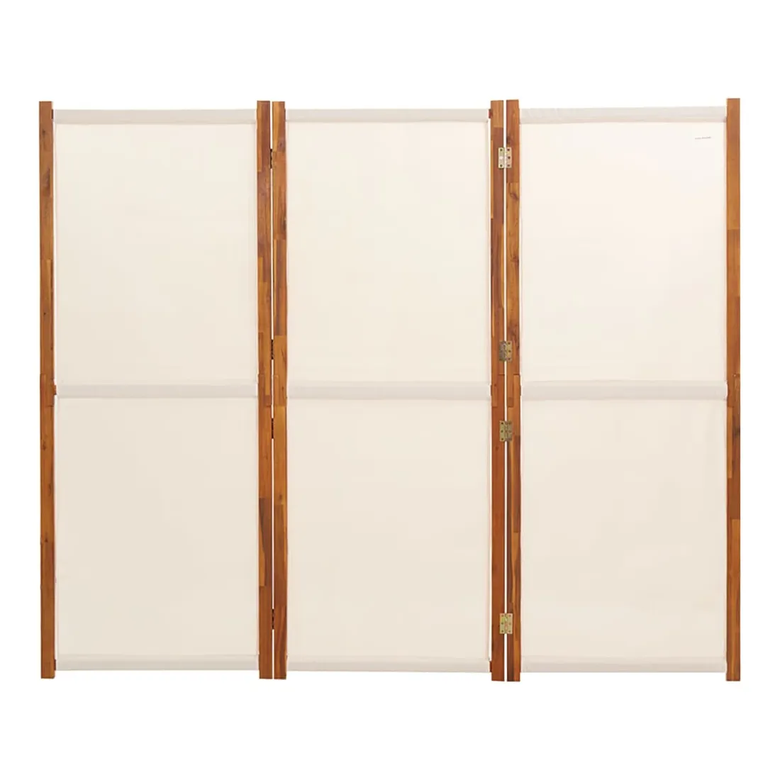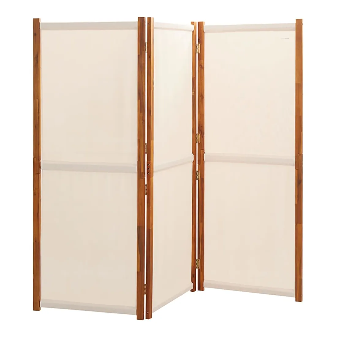 Cette cloison de séparation est parfaite pour créer une zone ou une section séparée et privée dans votre espace de vie intérieur ou extérieur. Matériau de première qualité : le bois d'acacia massif est un matériau naturel magnifique. Le bois d'acacia est un bois dur tropical, qui est dense, robuste et durable. Le textilène robuste est également résistant aux intempéries et facile à nettoyer.Design pliable : cet écran à panneaux peut également être plié facilement pour économiser de l'espace lorsqu'il n'est pas utilisé.Fonctions multiples : ce pare-vue peut être utilisé aussi bien comme décoration que comme cloison. Il est parfait pour séparer une zone pour plus d'intimité ou pour créer une pièce supplémentaire.