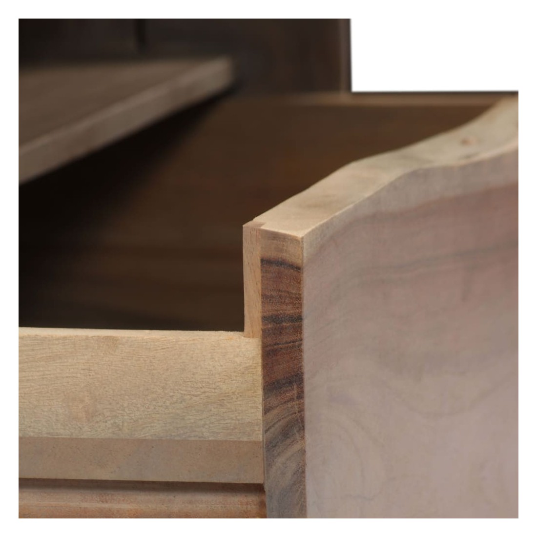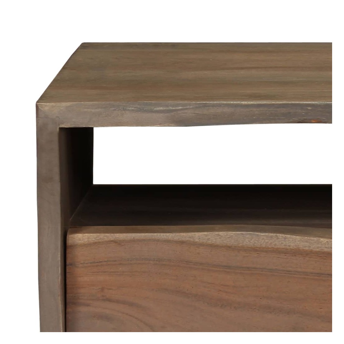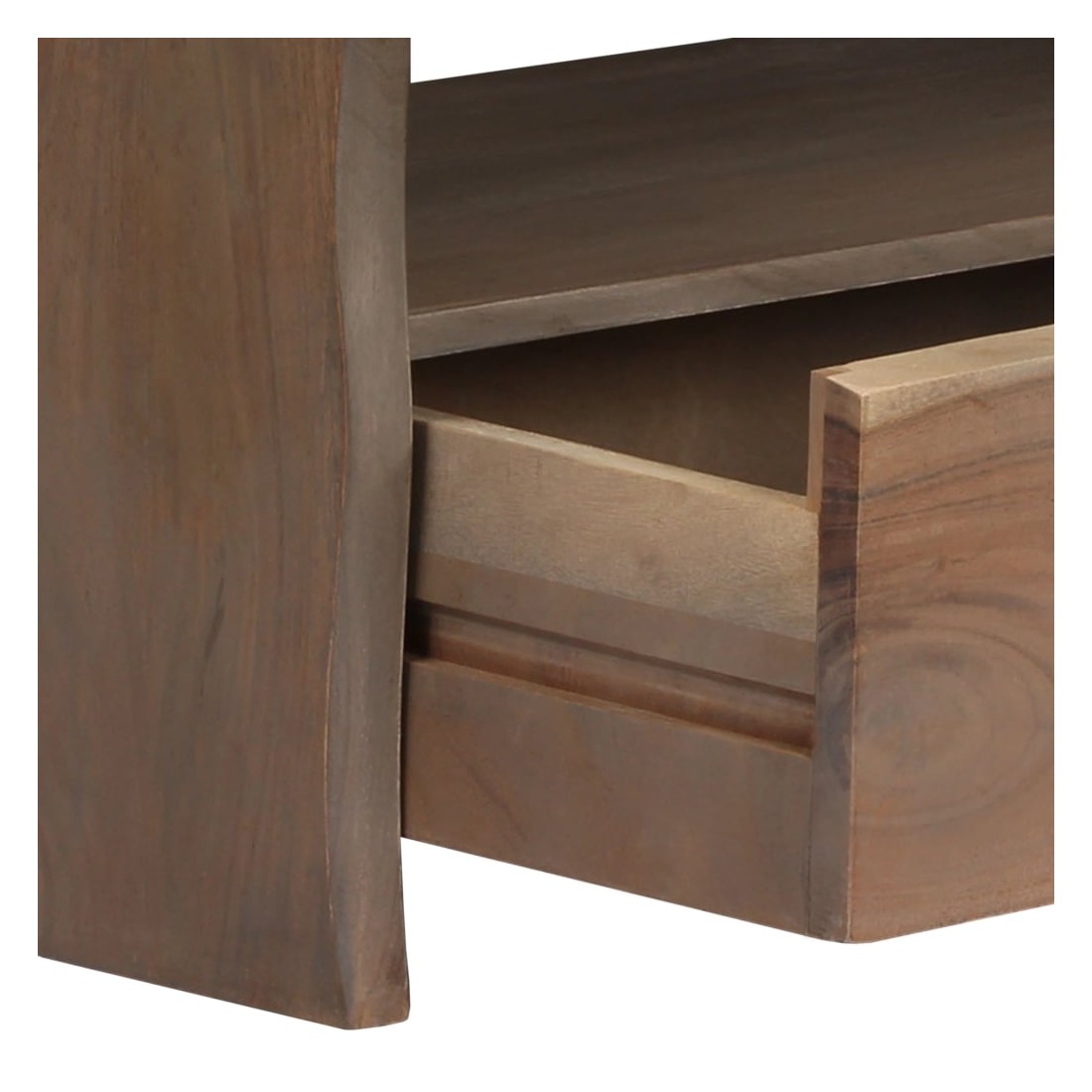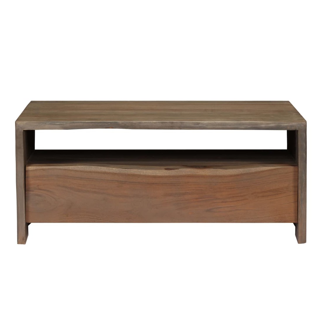 Cette table basse en bois dégage un charme rustique et sera un excellent supplément à votre intérieur. La table basse est faite de bois d'acacia massif qui a reçu une belle finition par polissage, peinture et laquage, pour lui donner un aspect raffiné. Cette table est entièrement faite à la main et les magnifiques grains de bois rendent chaque meuble unique et légèrement différent des autres. Le bord assorti du bois qui suit la forme naturelle de l'arbre augmente la beauté de la table. Cette table d'appoint a une surface solide et stable, sur laquelle vous pouvez placer vos boissons, aliments, paniers de fruits ou objets décoratifs. Elle est dotée d'un compartiment et d'un tiroir qui offrent suffisamment d'espace pour garder vos magazines, livres, télécommandes et autres petits objets