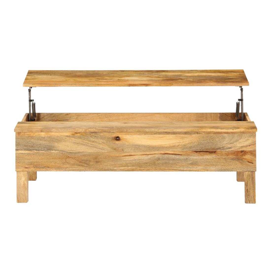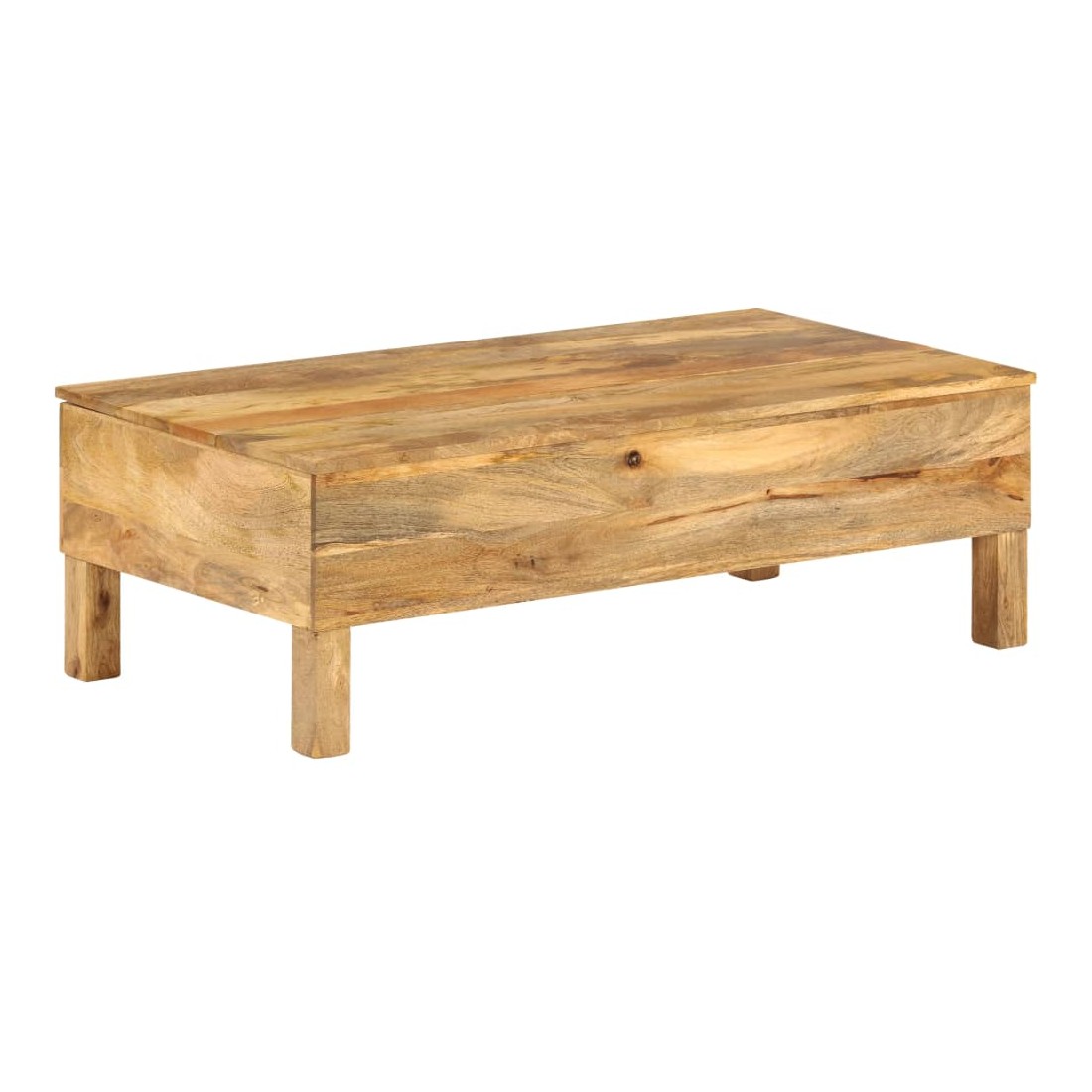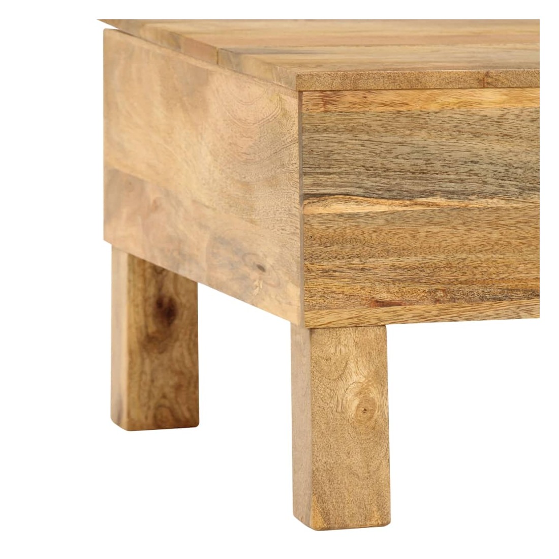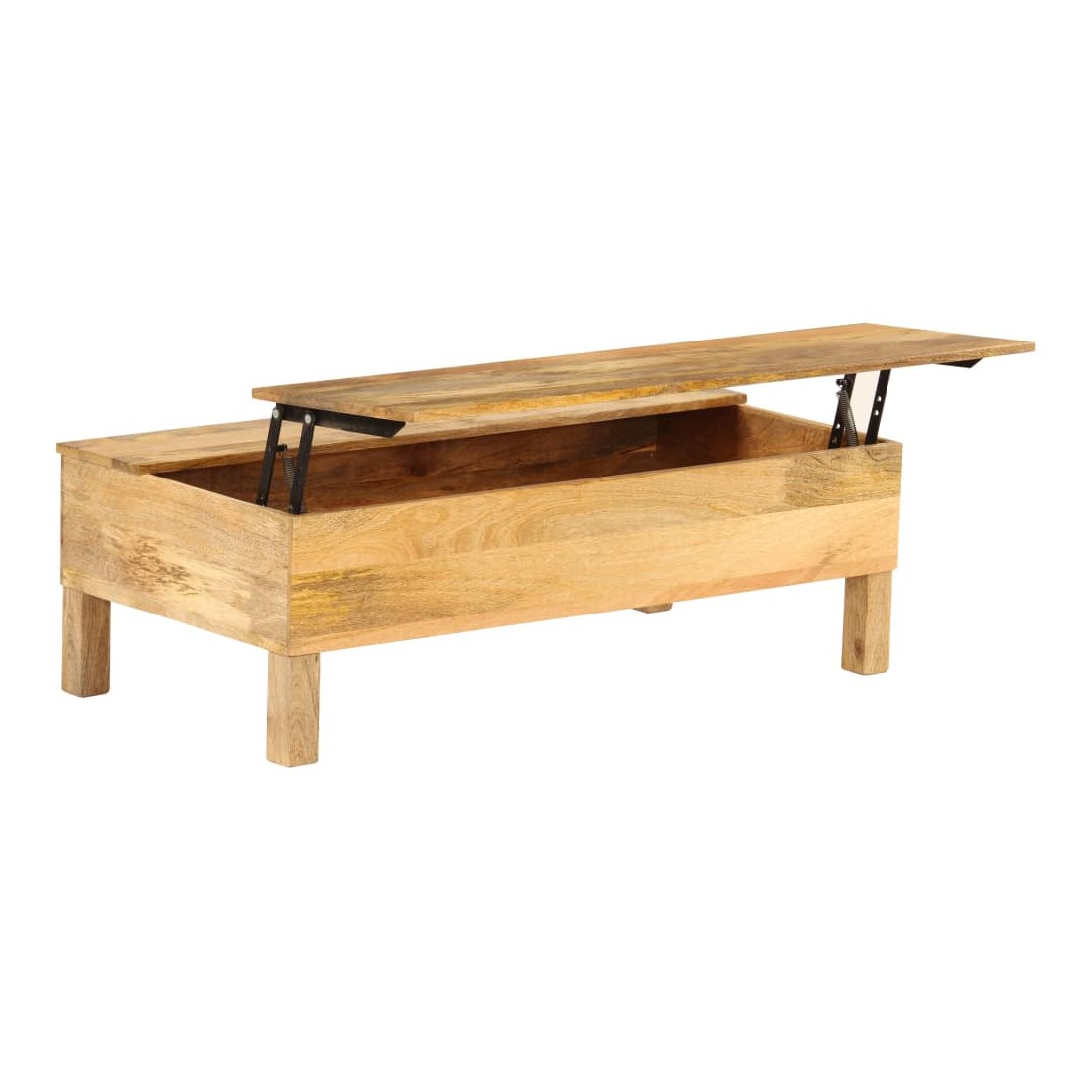 Profitez de votre temps de café avec notre table de canapé multifonctionnelle ! Cette table d'appoint de canapé au design astucieux combine une table basse et une boîte de rangement en une seule. Cette table en bois massif apportera une touche de charme rustique à votre décoration intérieure. La table basse est faite de bois de manguier massif, stable, durable et beau et l'artisanat ajoute à son spectaculaire style rétro. Chaque étape du processus est réalisée avec le plus grand soin, que ce soit le polissage, la peinture ou le laquage. Les beaux grains de bois rendent chaque meuble unique et légèrement différent l'un de l'autre. Notre table multifonctionnelle sera un supplément pratique à votre maison. Il suffit de soulever le dessus réglable et de prendre une tasse de café ou même un