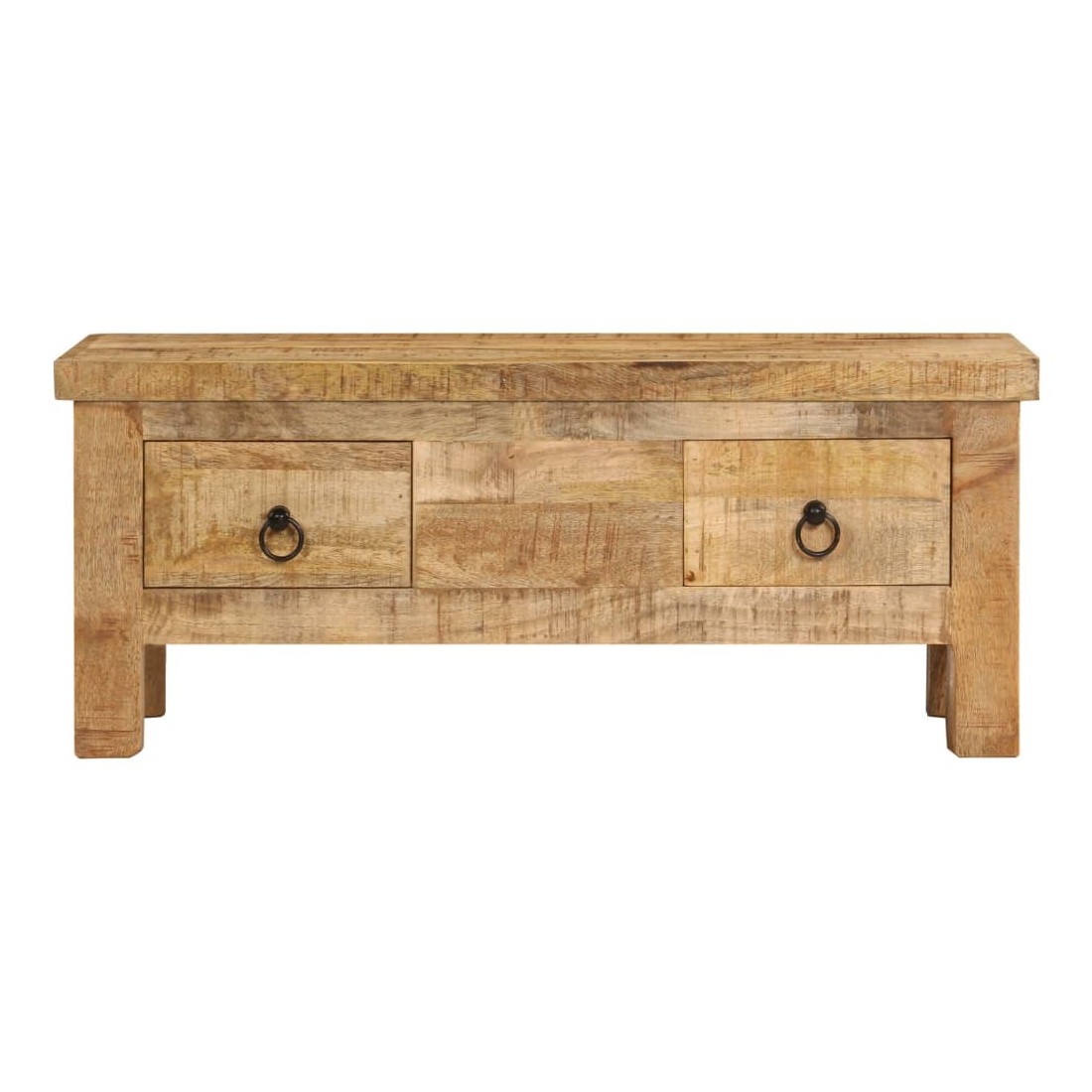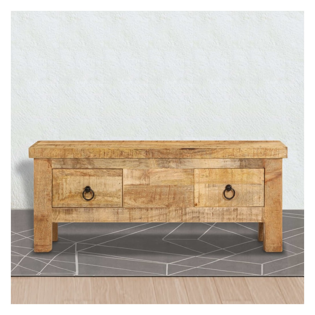 Cette table basse spéciale présente un style antique qui ajoutera une touche de charme vintage à votre décor. Fabriquée en bois de manguier massif, cette table d'appoint au design élégant est à la fois très stable et durable. Ce buffet est entièrement fait à la main et chaque étape du processus, que ce soit le polissage, la peinture ou le laquage, a été réalisée avec le plus grand soin. De plus, cette table de salon dispose de 2 tiroirs pratiques, qui offrent suffisamment d'espace pour ranger vos appareils multimédia, livres et autres articles divers. Remarque importante : Les couleurs et le grain du bois peuvent varier d'une pièce à l'autre, ce qui rend chaque table basse unique en son genre. La livraison est aléatoire, ce qui garantit l'exclusivité et l'individualité de votre produit