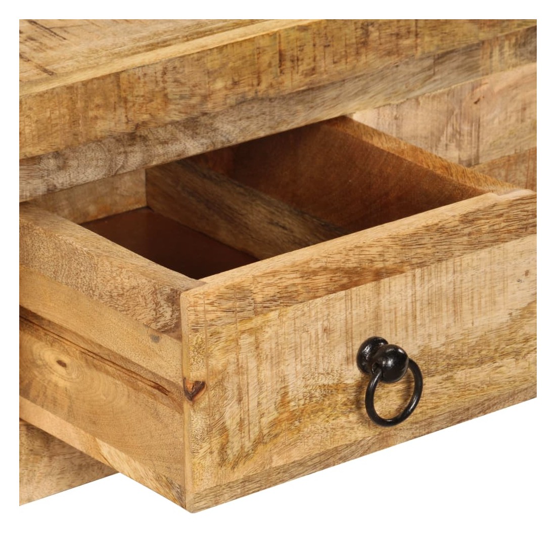 Cette table basse spéciale présente un style antique qui ajoutera une touche de charme vintage à votre décor. Fabriquée en bois de manguier massif, cette table d'appoint au design élégant est à la fois très stable et durable. Ce buffet est entièrement fait à la main et chaque étape du processus, que ce soit le polissage, la peinture ou le laquage, a été réalisée avec le plus grand soin. De plus, cette table de salon dispose de 2 tiroirs pratiques, qui offrent suffisamment d'espace pour ranger vos appareils multimédia, livres et autres articles divers. Remarque importante : Les couleurs et le grain du bois peuvent varier d'une pièce à l'autre, ce qui rend chaque table basse unique en son genre. La livraison est aléatoire, ce qui garantit l'exclusivité et l'individualité de votre produit.