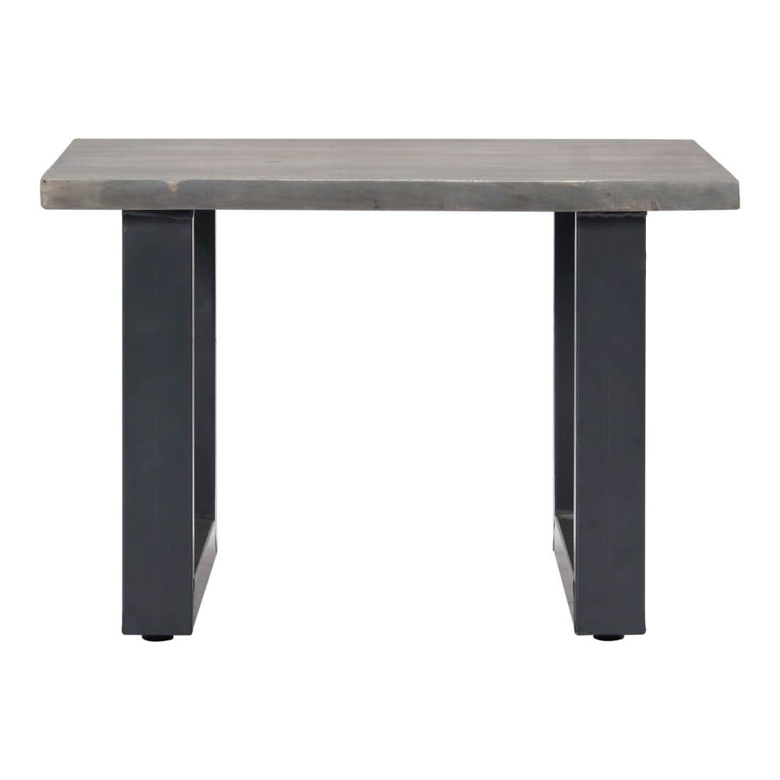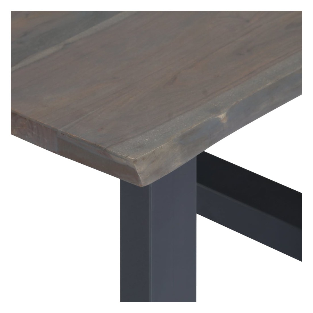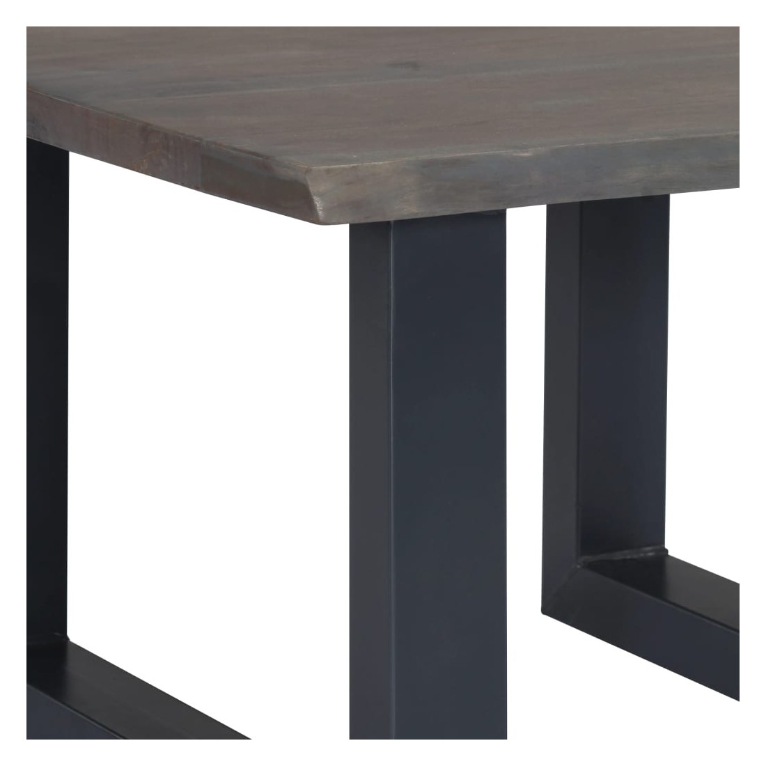 - Matériau : bois d'acacia massif avec finition grise (dessus de table) + fer recouvert de poudre (pieds)
