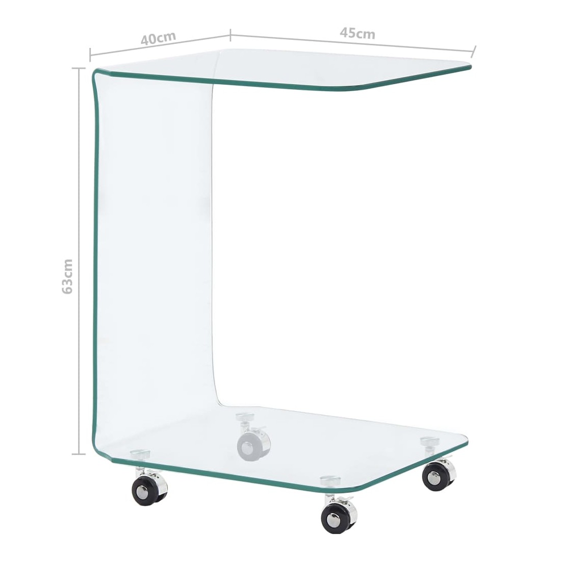 Introduisez une touche de charme contemporain dans votre intérieur avec ce style minimaliste et cette table basse intemporelle ! La table de canapé est faite de verre de sécurité trempé qui est plus sûr et plus résistant que le verre normal. Par conséquent, elle est durable et robuste. Grâce aux 4 roulettes, notre table d'appoint est facile à déplacer. La table basse en verre est facile à nettoyer avec un chiffon humide. Détendez-vous et profitez du bon temps avec la famille et les amis autour de cette table d'appoint !