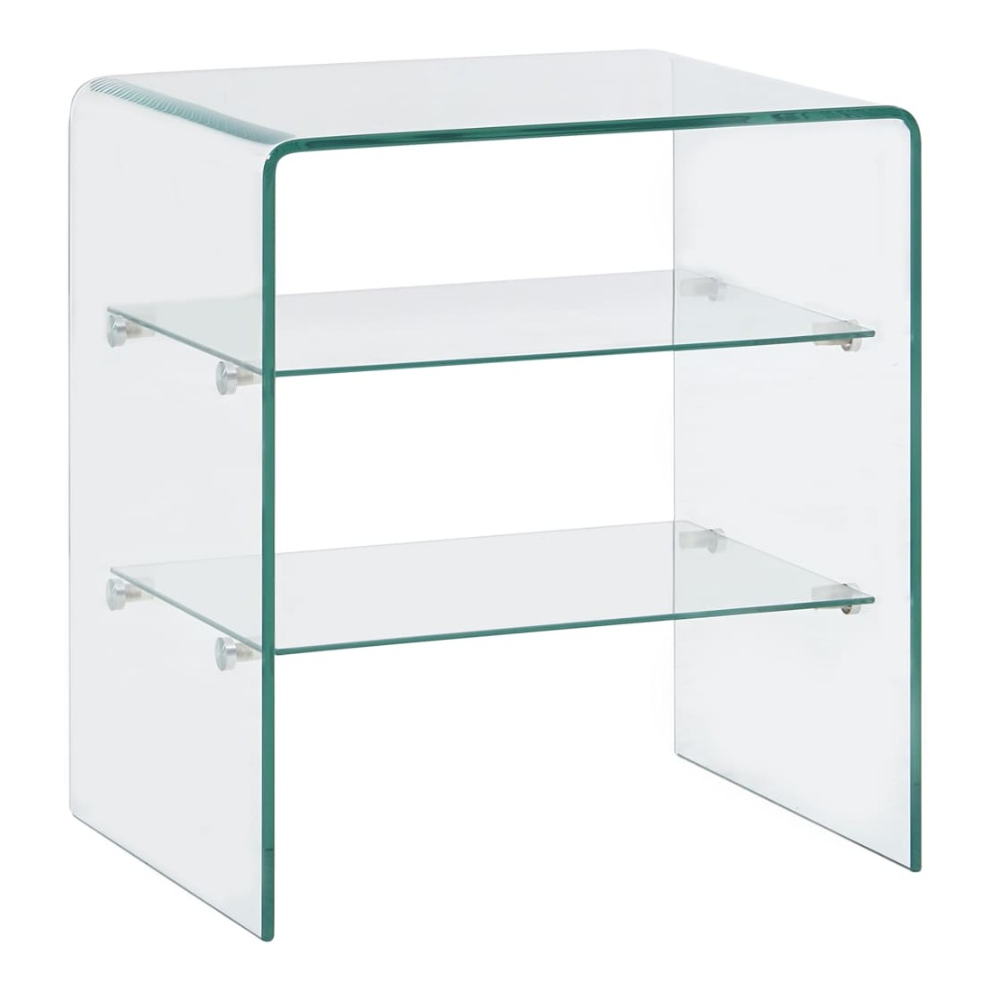 - Épaisseur du verre : plateau de 10 mm / étagères de 5 mm
