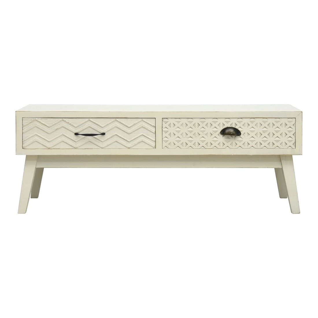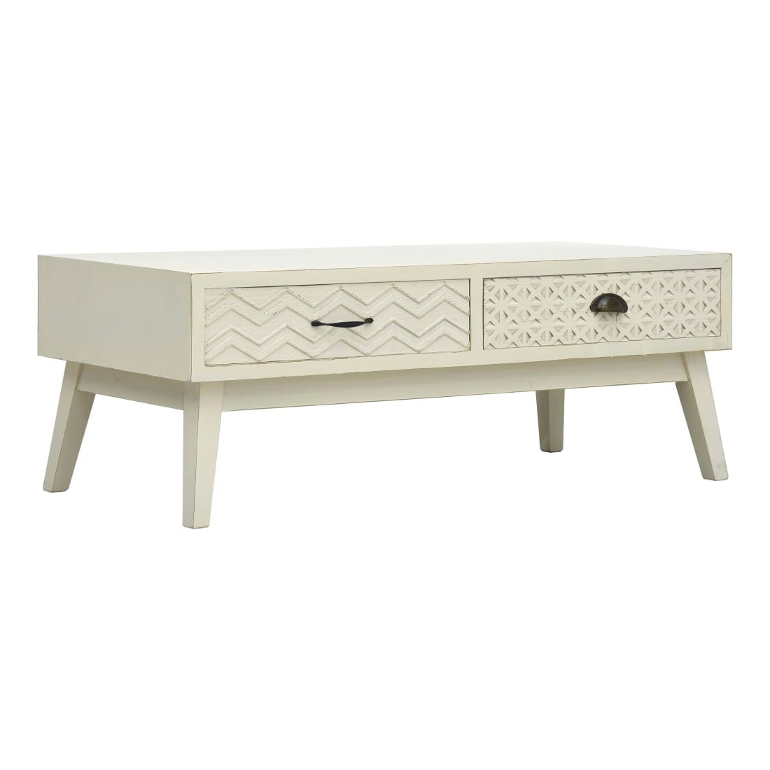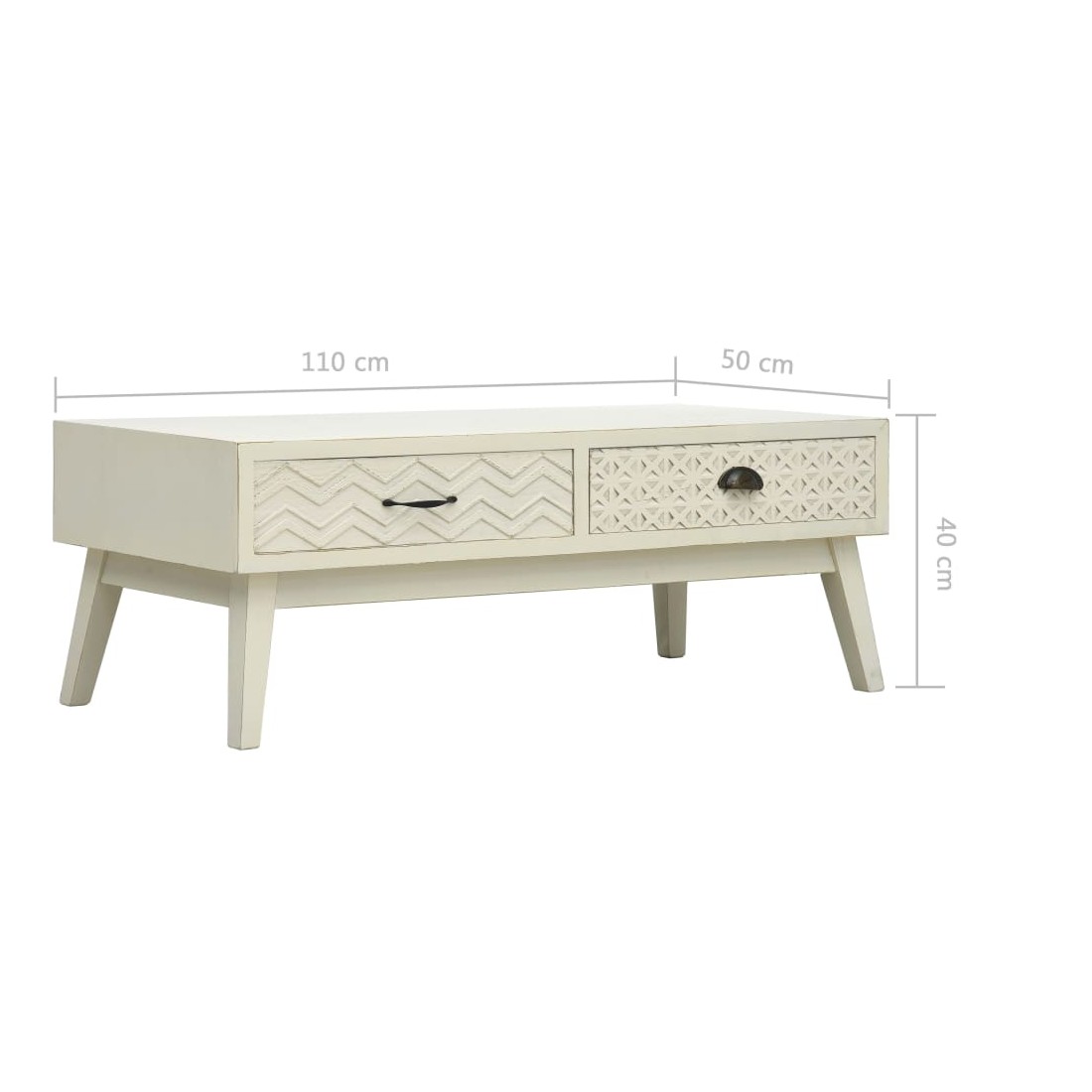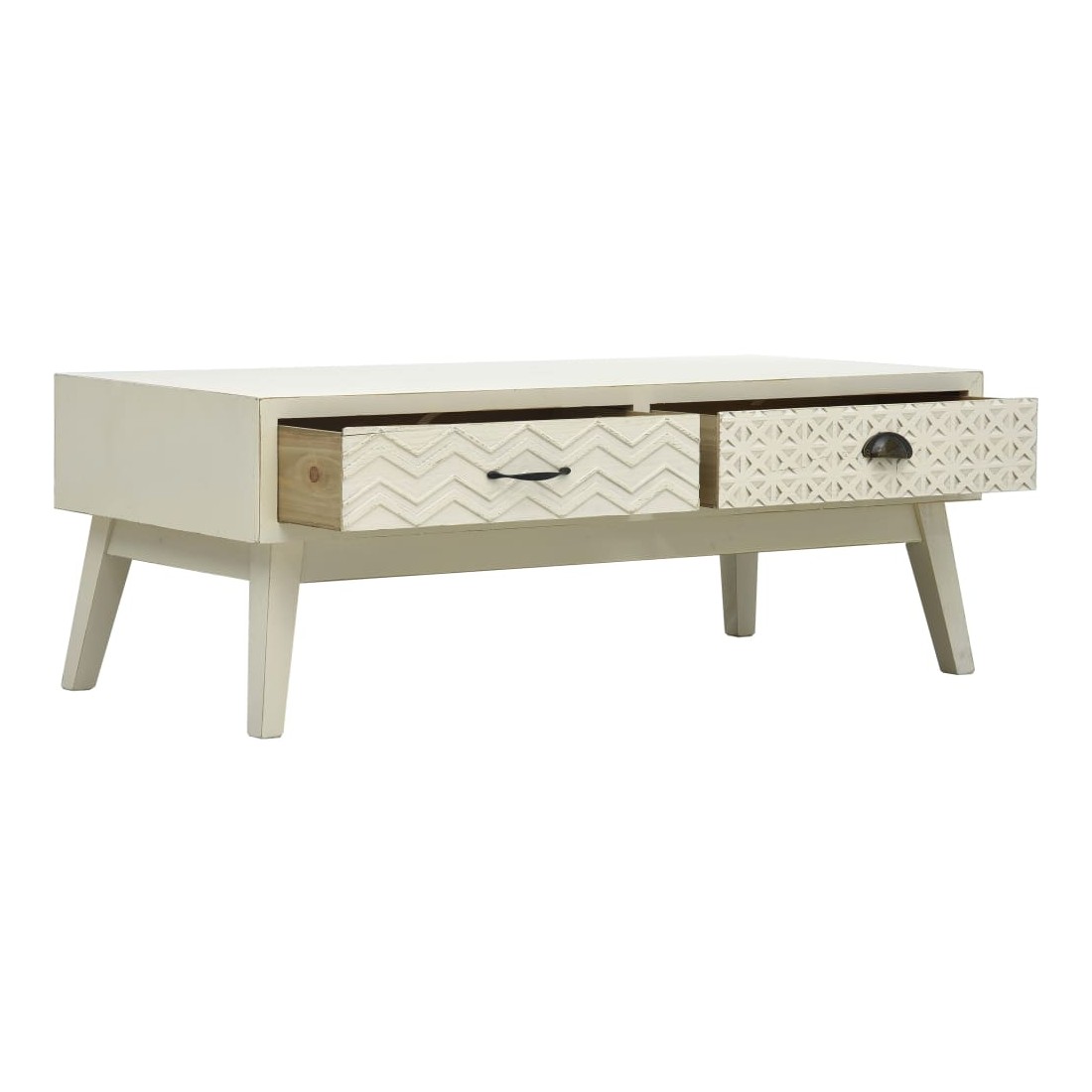 Êtes-vous toujours à la recherche d'une table basse polyvalente et facile à assortir ? Notre table basse au look vintage est un choix optimal pour vous ! Vous pouvez l'utiliser comme table basse, table d'appoint, table de canapé, etc. Cette table est fabriquée en MDF et en bois de pin, robuste et durable à utiliser, ce qui la fait durer des années. Deux tiroirs au design sculpté offrent suffisamment d'espace pour ranger et organiser vos livres, télécommandes ou autres effets personnels, ce qui rend vos affaires propres et bien rangées. Elle est facile à nettoyer et à entretenir. Notre table basse est facile à assembler.